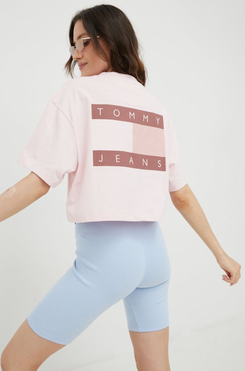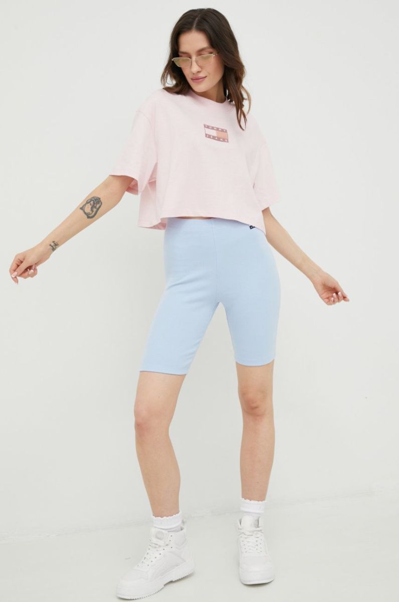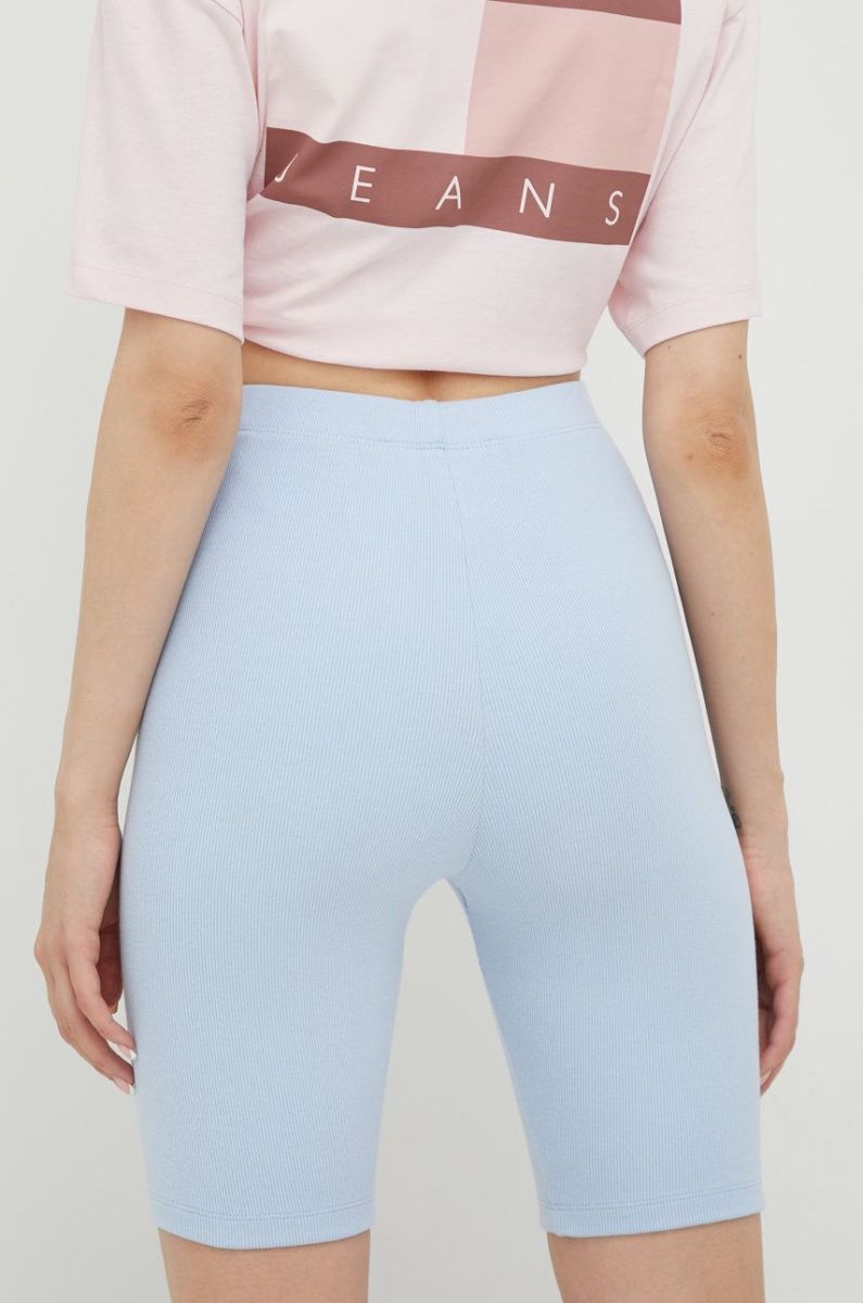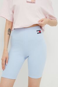 Шорти Tommy Jeans жіночі з аплікацією висока посадка колір блакитний (2501365)