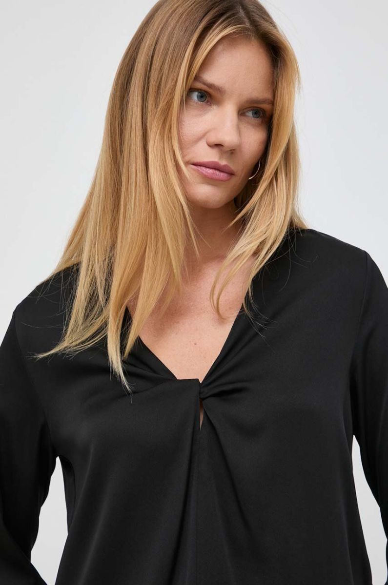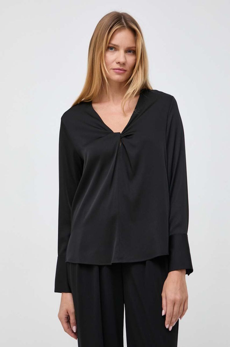 Шовкова блузка BOSS колір чорний однотонна