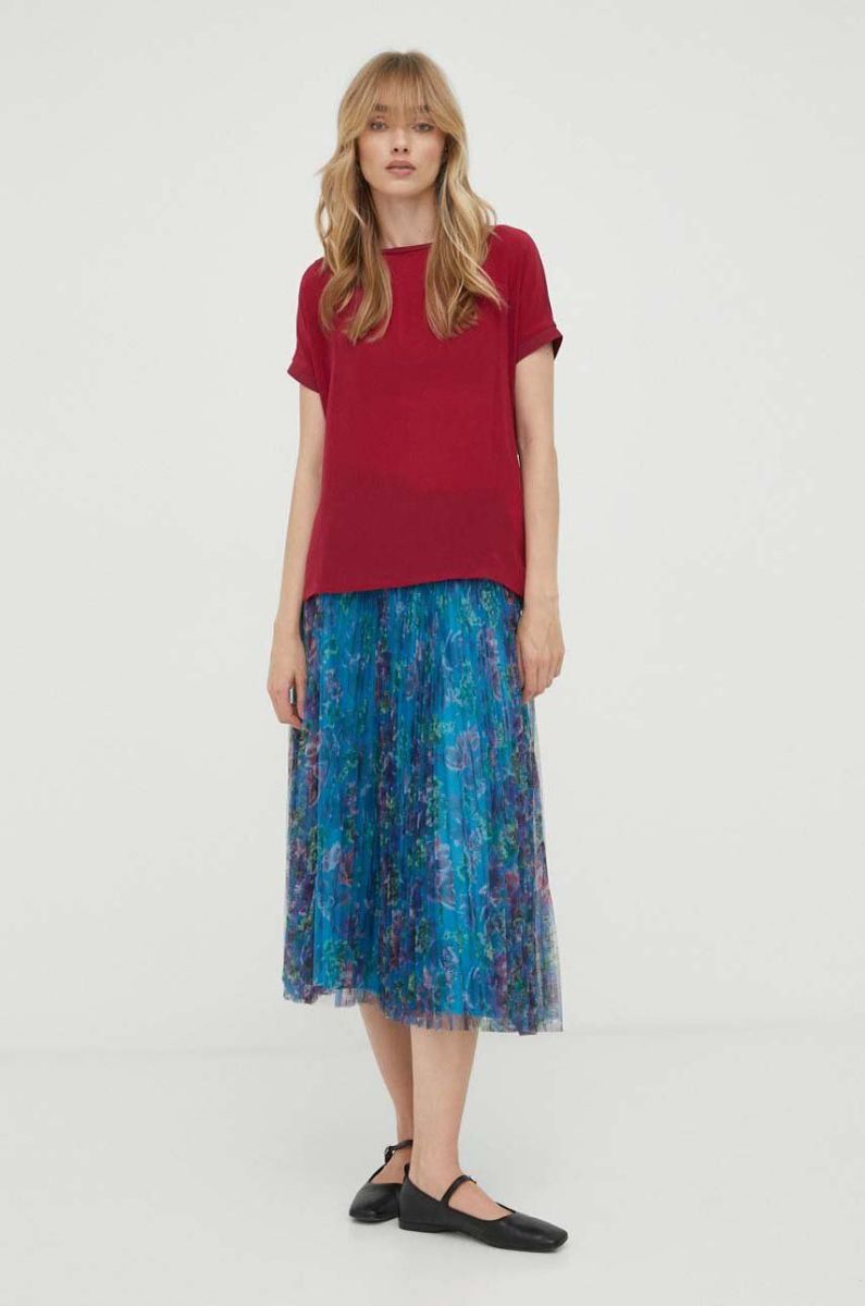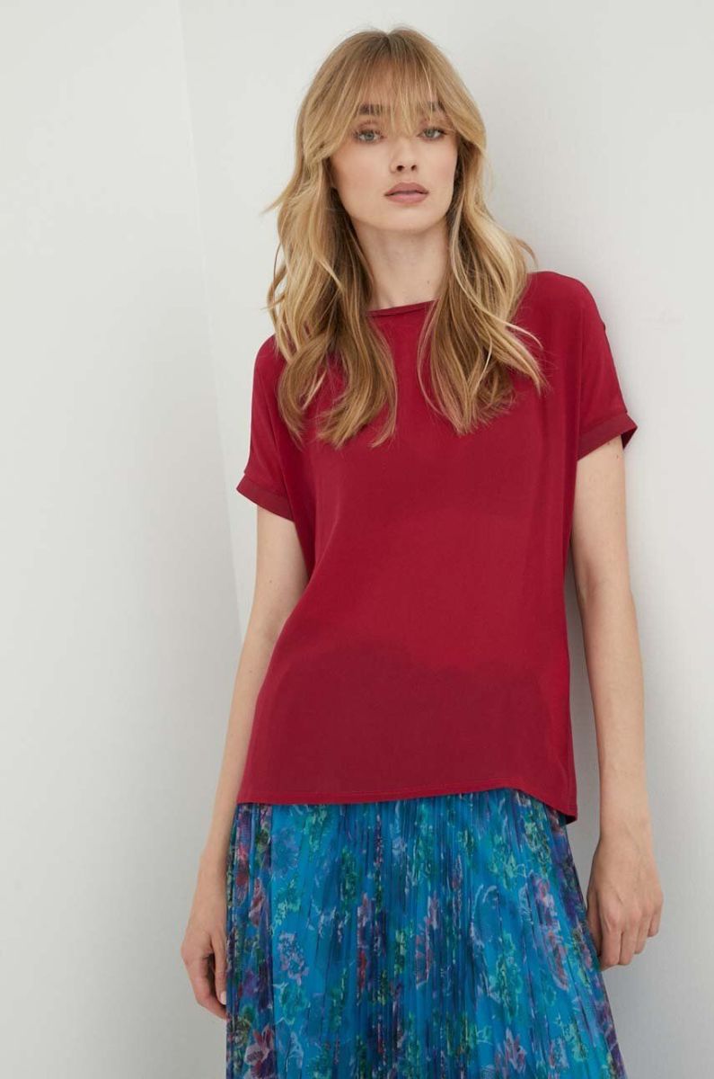 Шовкова блузка MAX&Co. колір бордовий однотонна