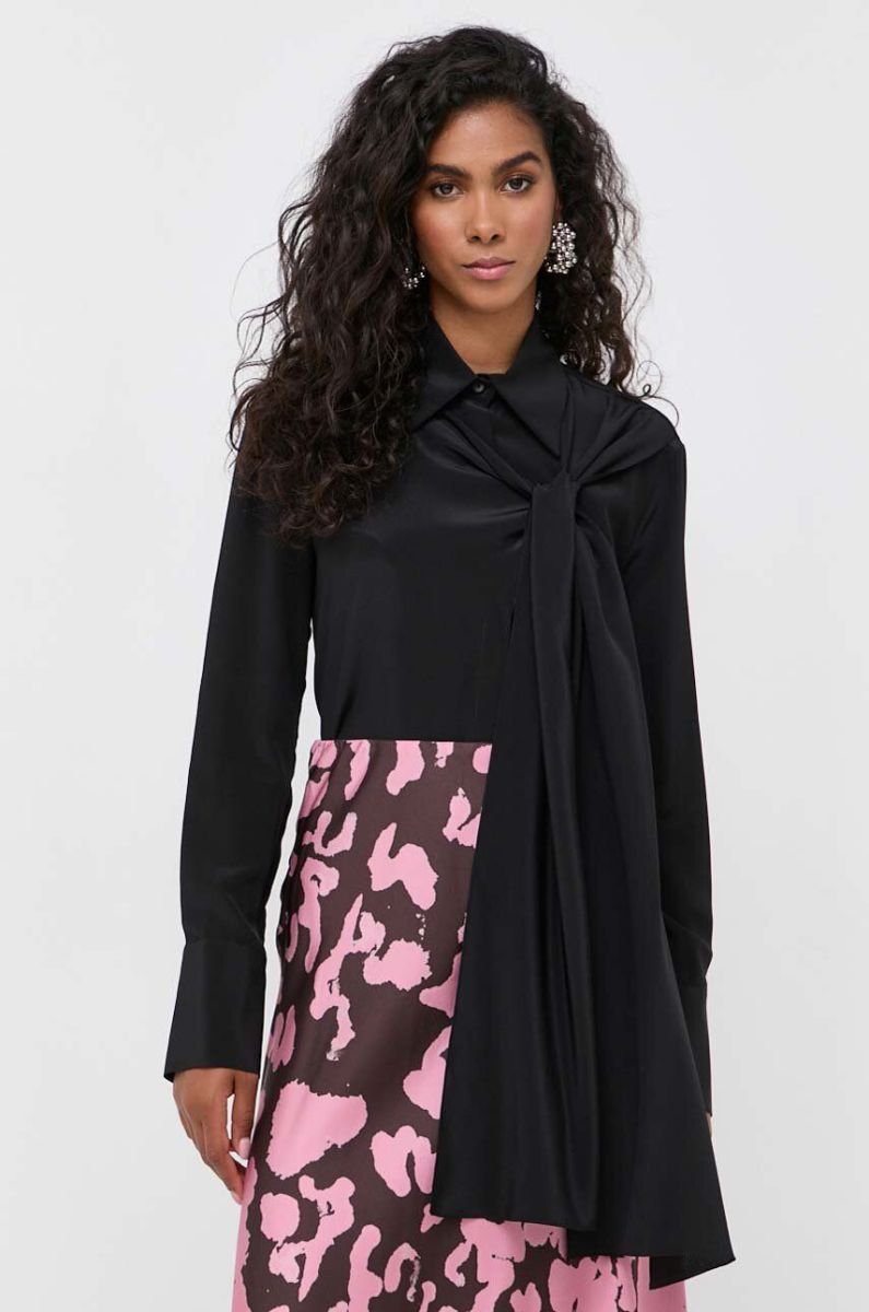 Шовкова сорочка Liviana Conti колір чорний regular класичний комір