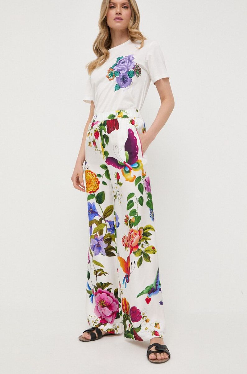 Шовкові штани Weekend Max Mara x Lily Aldridge прямі висока посадка колір барвистий