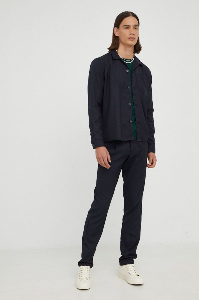 Штани Bruuns Bazaar чоловічі колір синій облягаюче
