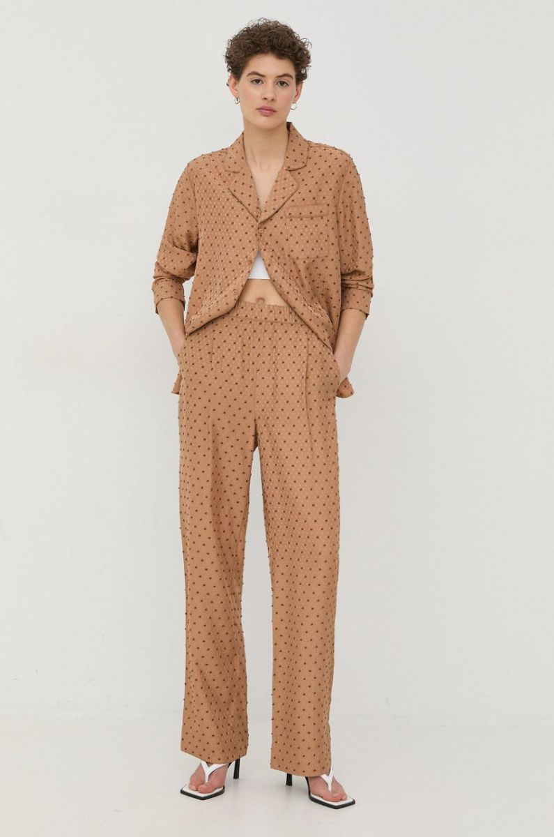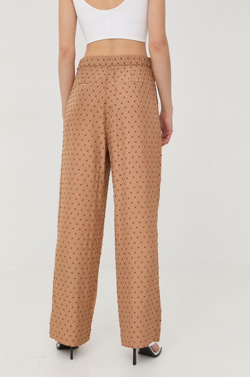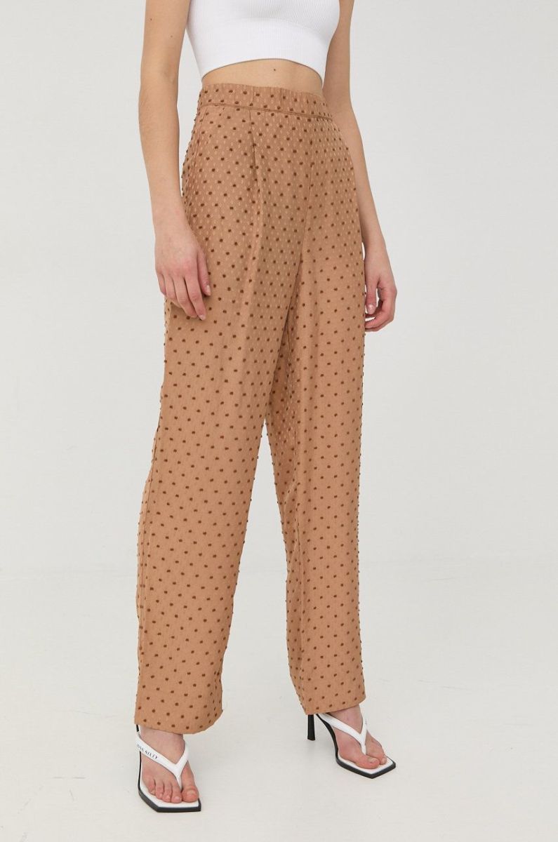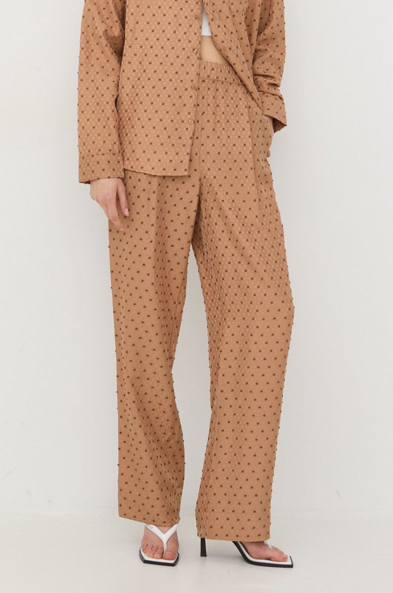 Штани Bruuns Bazaar жіночі колір бежевий широкі висока посадка