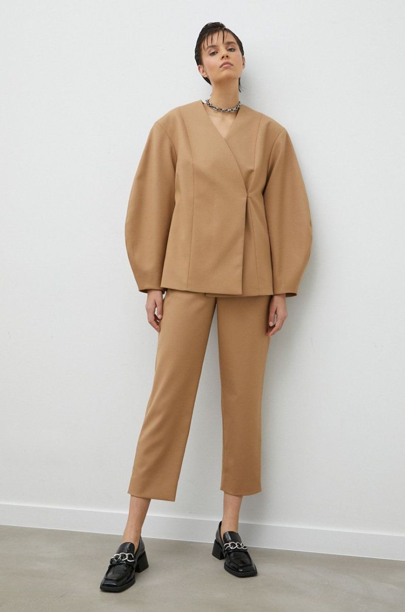 Штани By Malene Birger жіночі колір бежевий пряме висока посадка