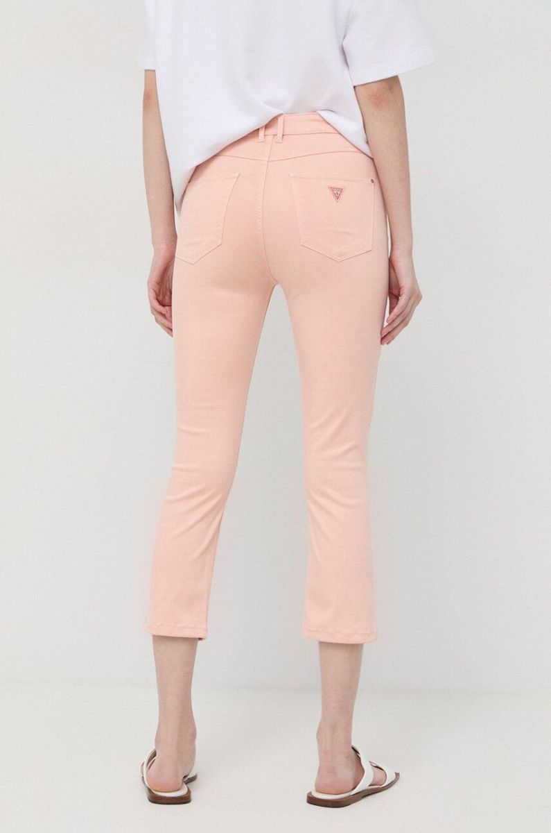 Штани Guess жіночі колір помаранчевий облягаюче висока посадка