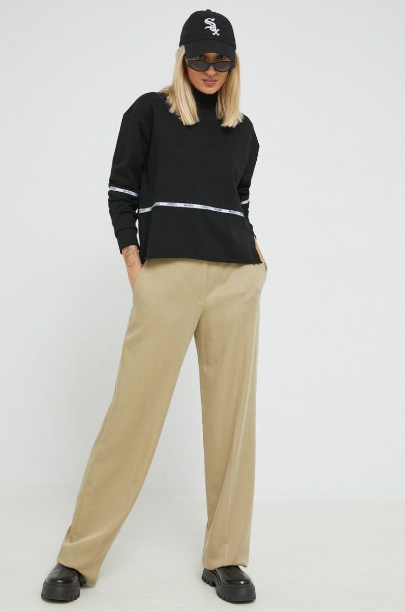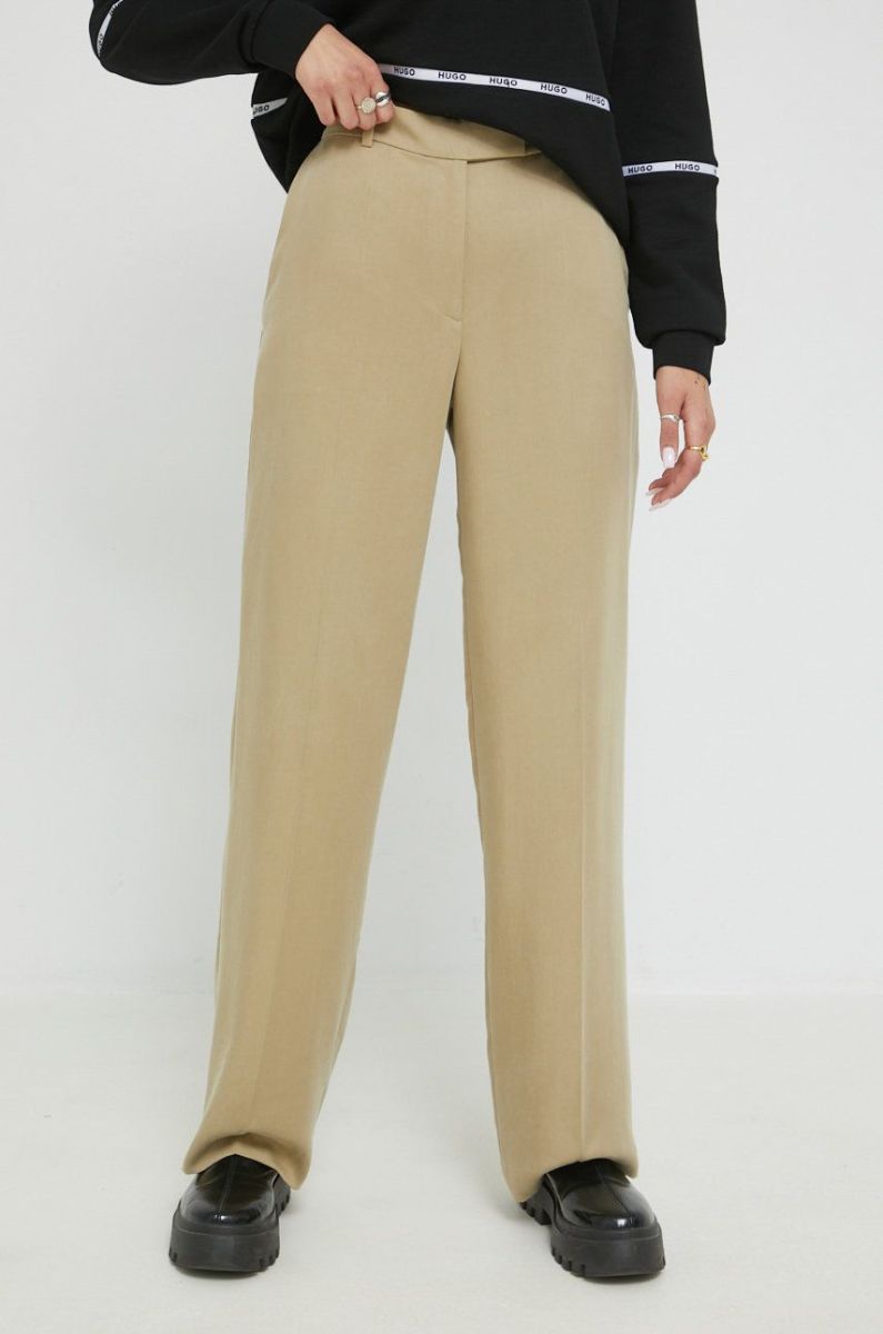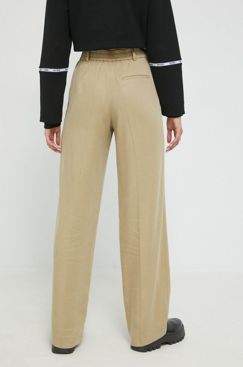 Штани HUGO жіночі колір бежевий широке висока посадка (2568288)