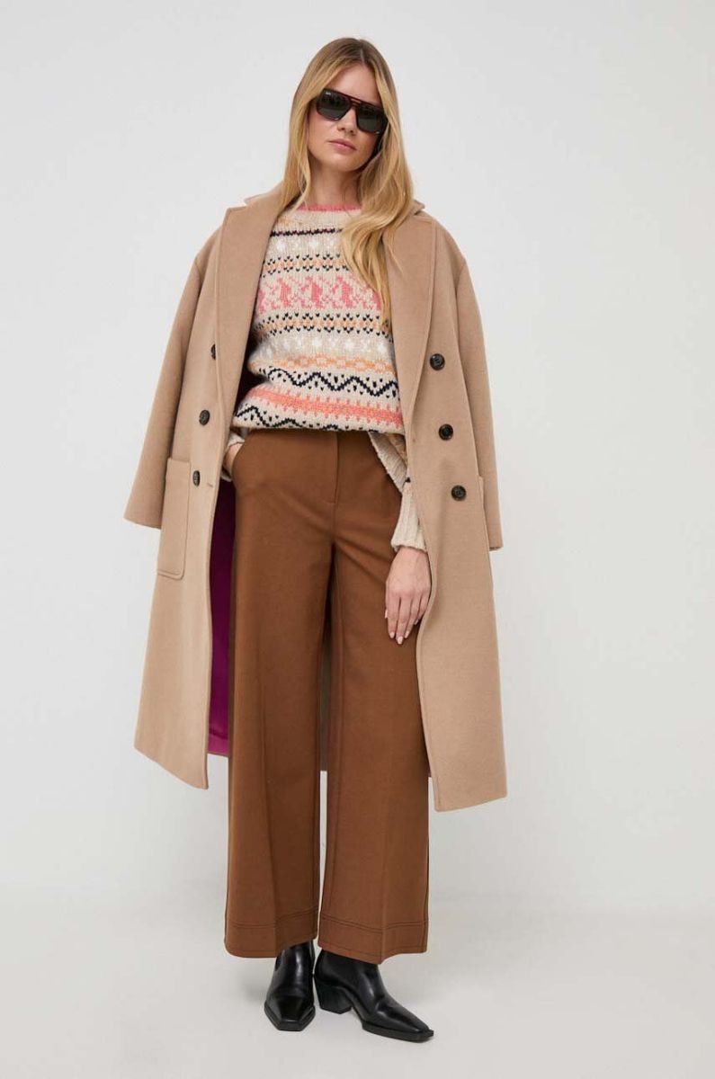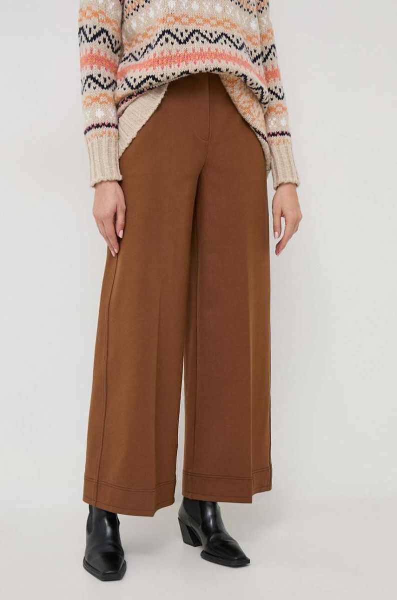 Штани MAX&Co. жіночі колір коричневий широке висока посадка