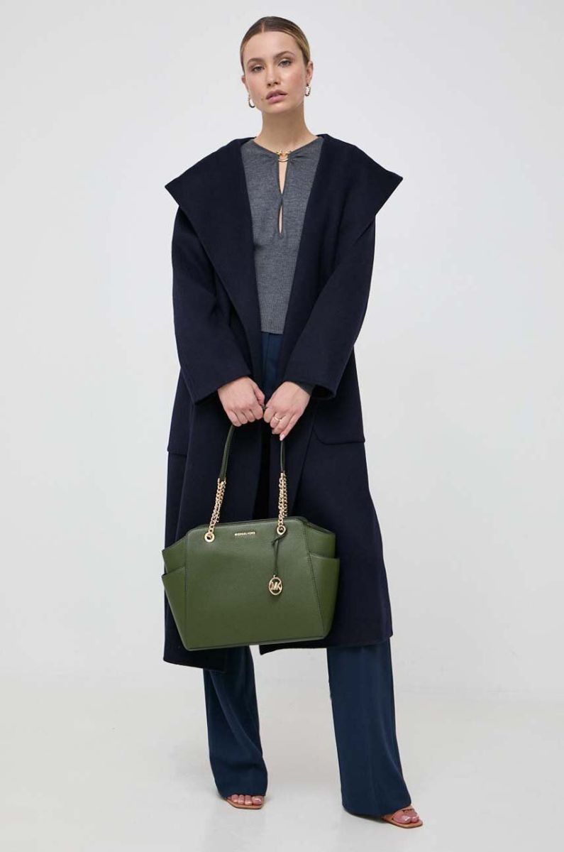 Штани MICHAEL Michael Kors жіночі колір синій широке висока посадка (3425699)
