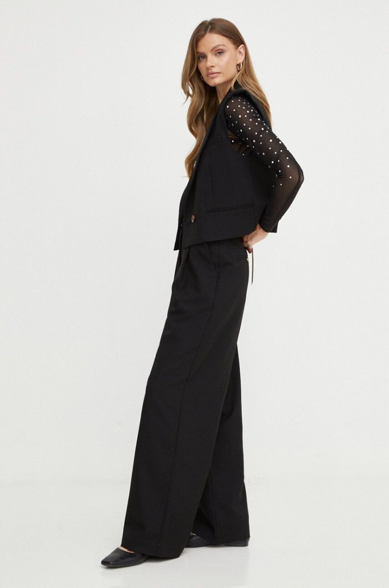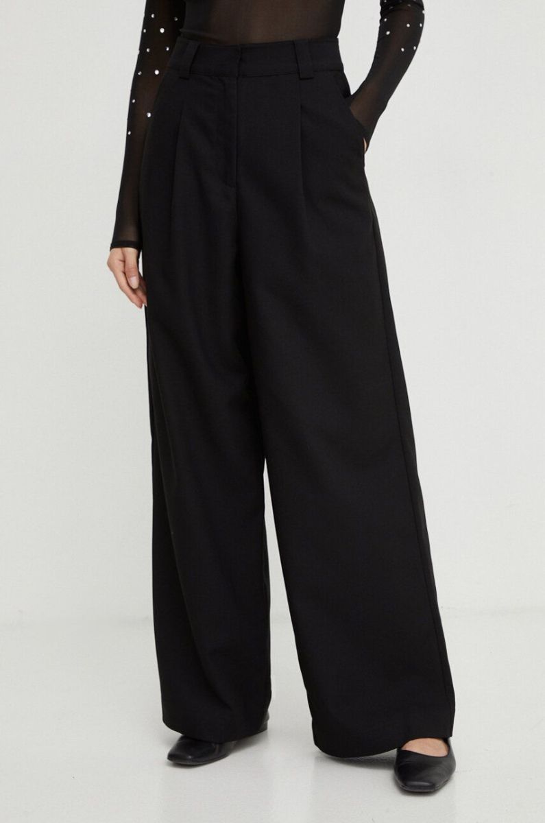 Штани Notes du Nord жіночі колір чорний широке висока посадка (3547420)