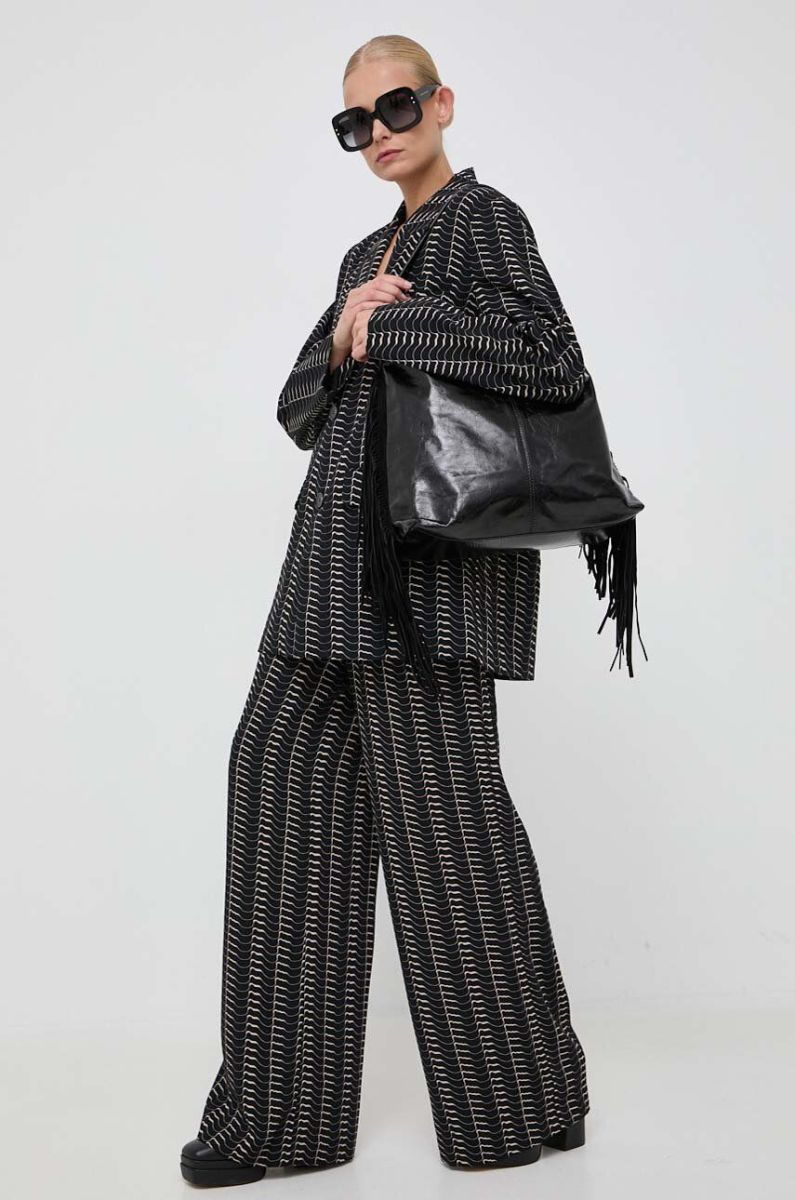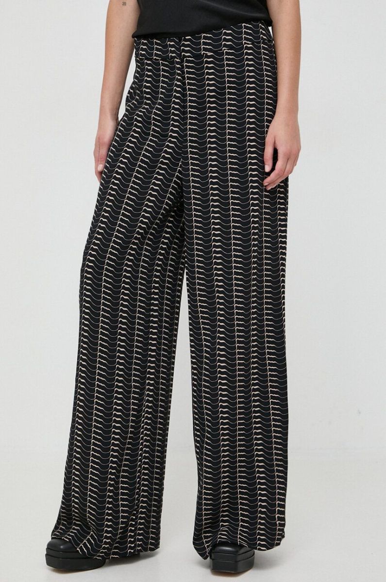 Штани Notes du Nord жіночі колір чорний широке висока посадка (3582840)