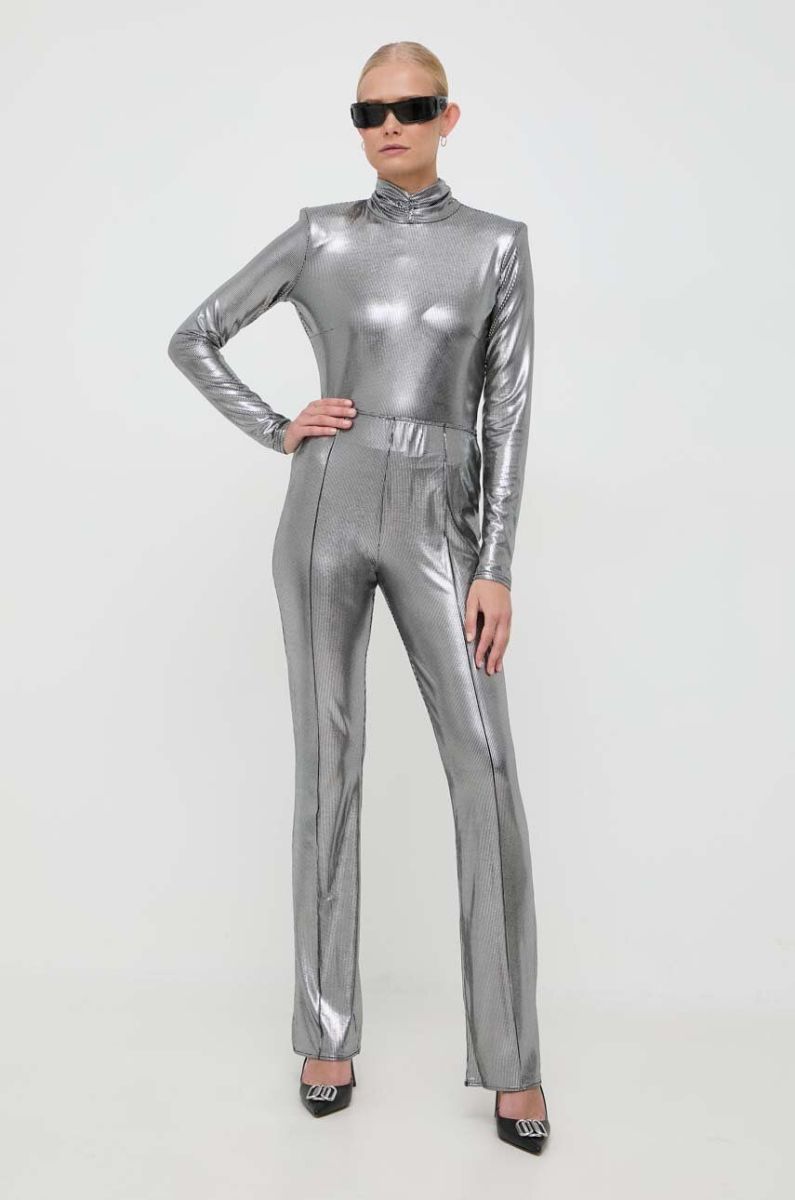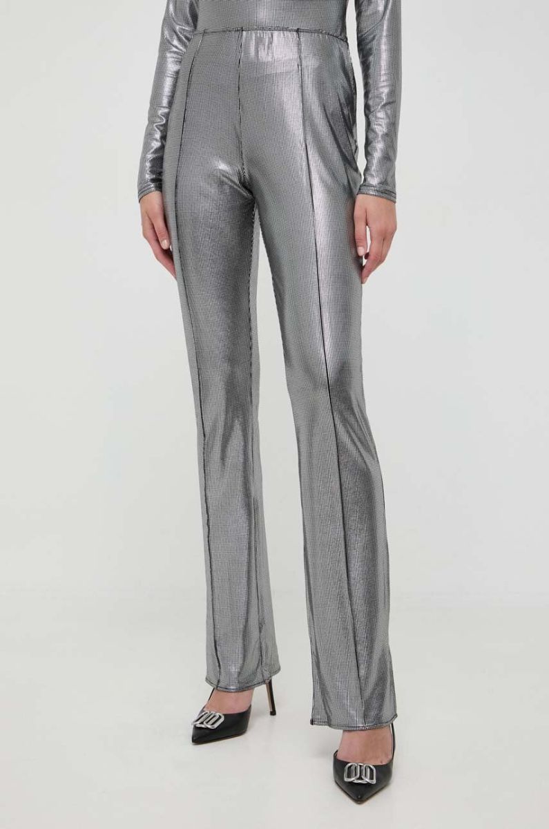 Штани Notes du Nord жіночі колір срібний кльош висока посадка