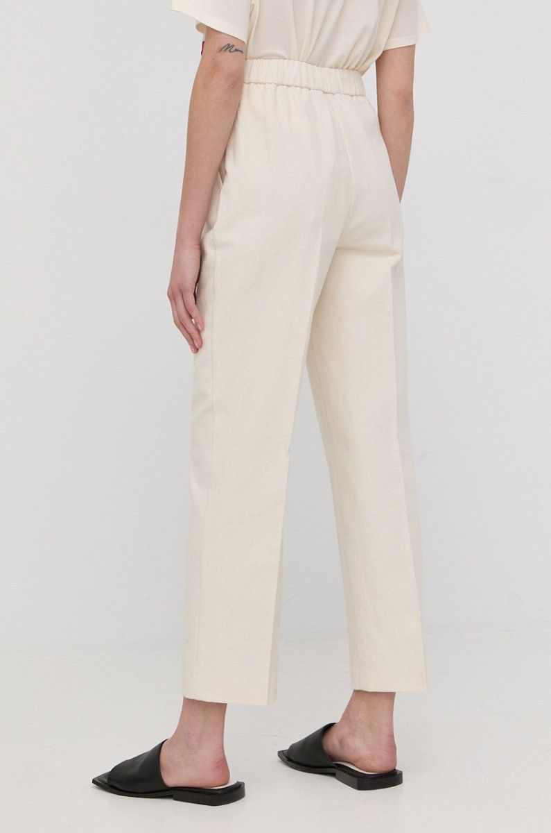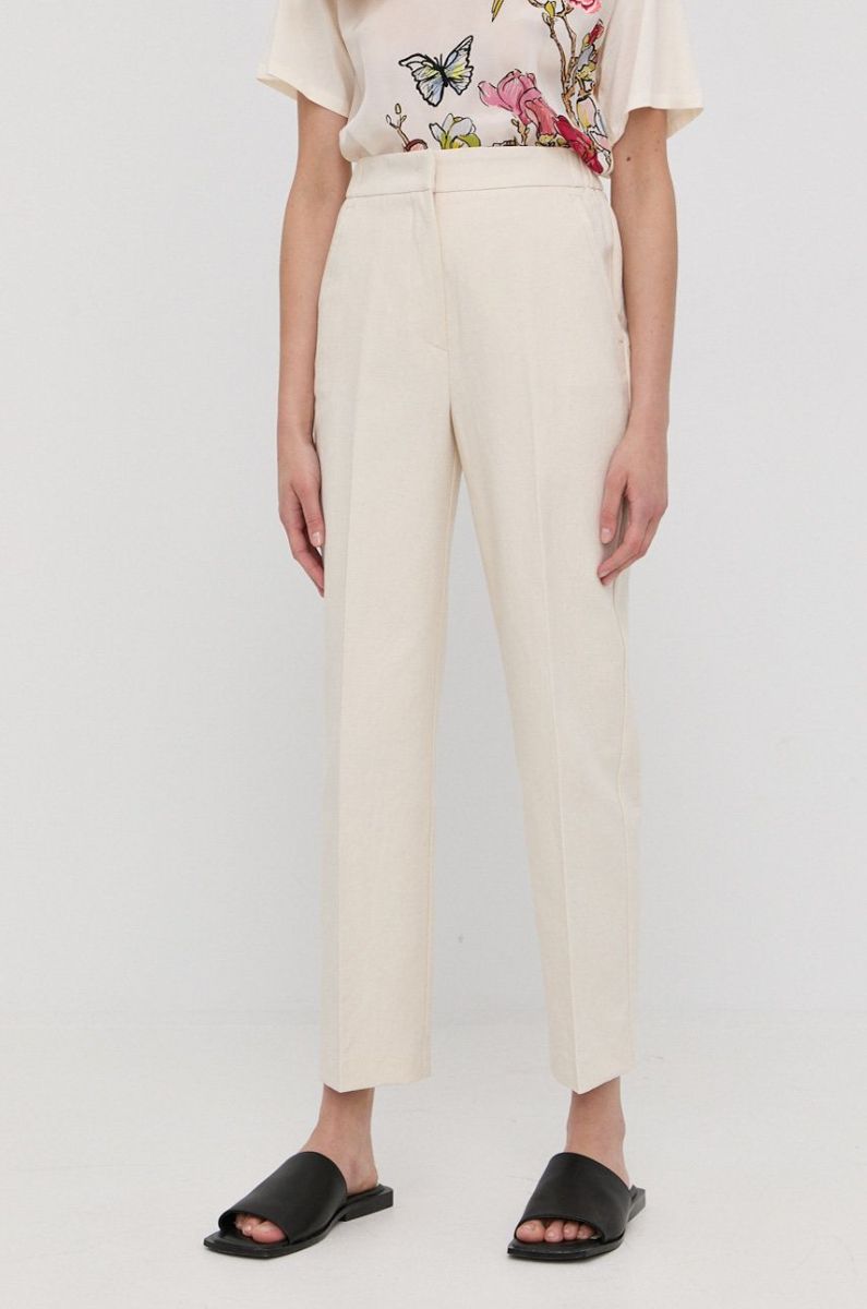 Штани з домішкою льону Beatrice B жіночі колір бежевий пряме висока посадка