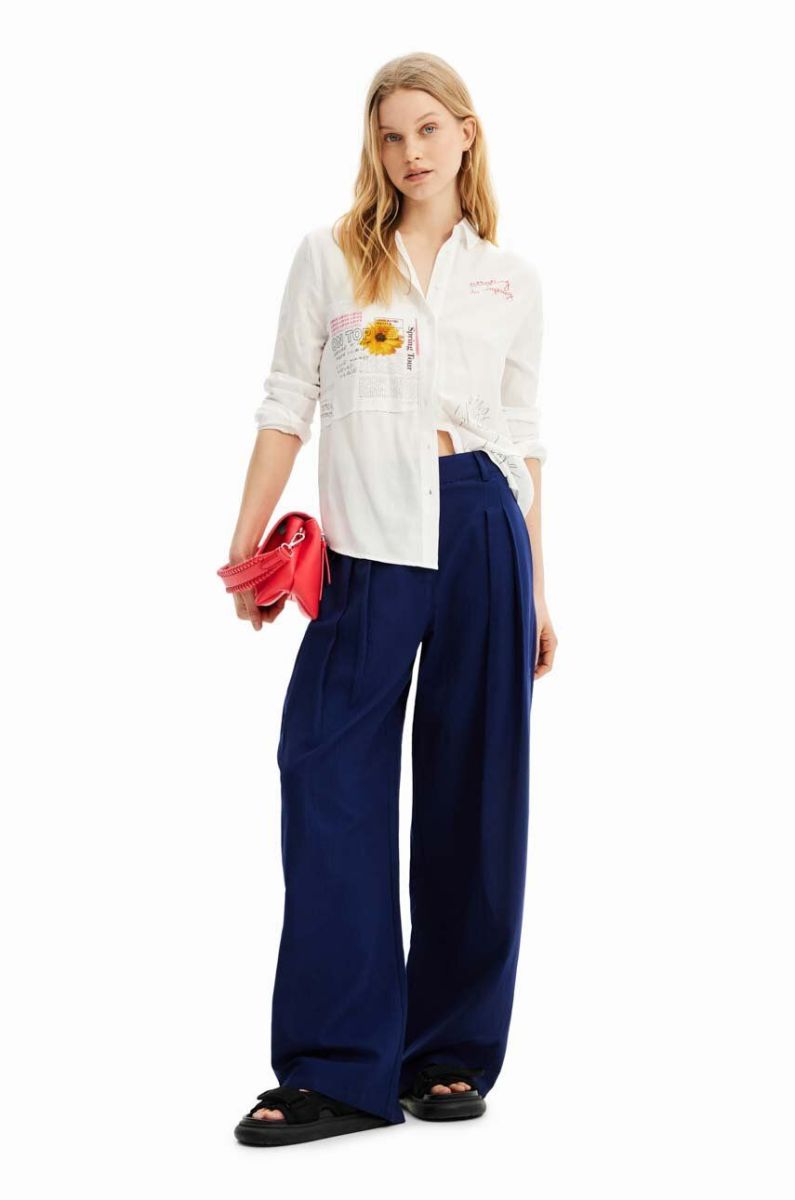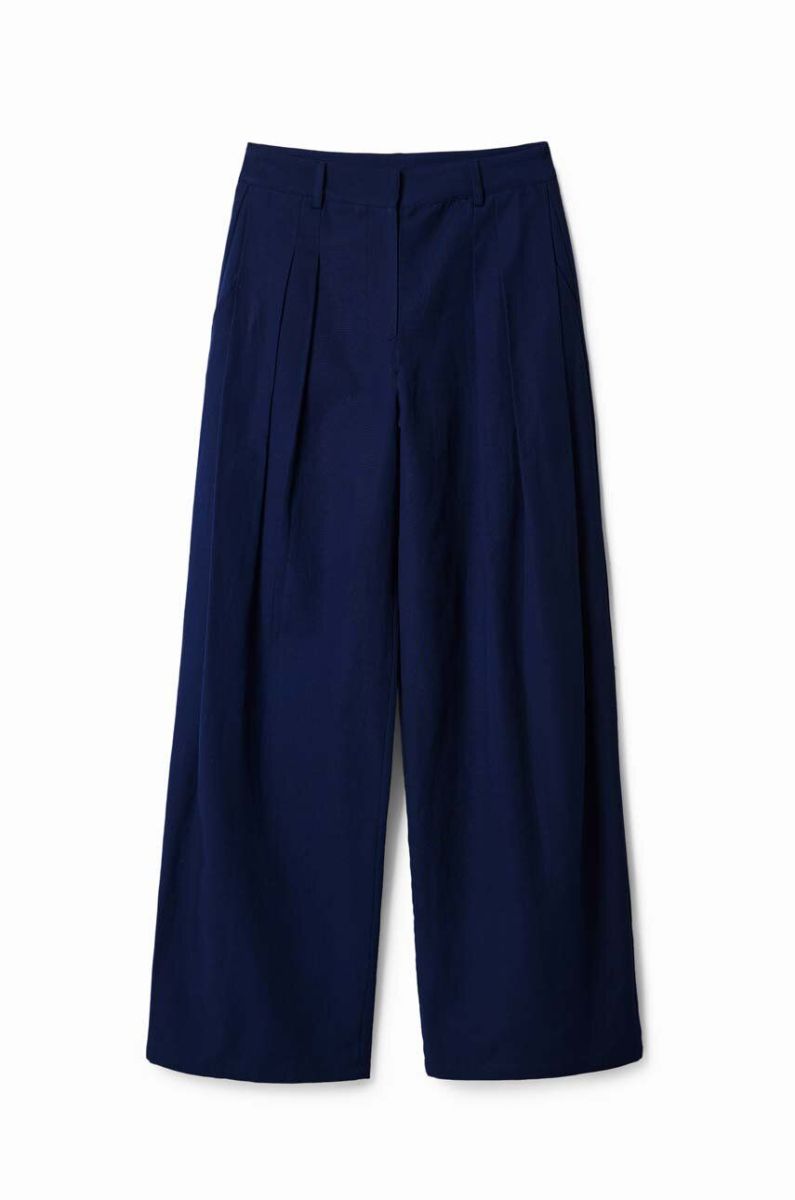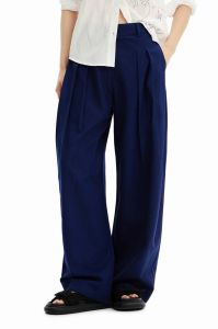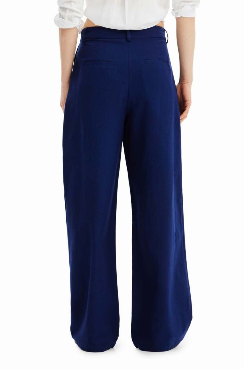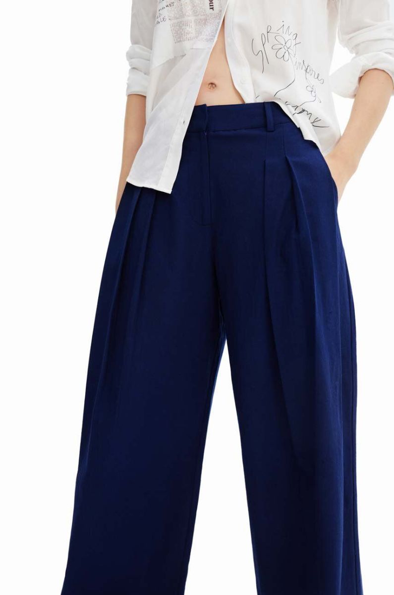 Штани з домішкою льону Desigual колір синій широке середня посадка