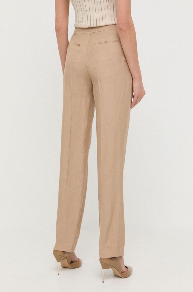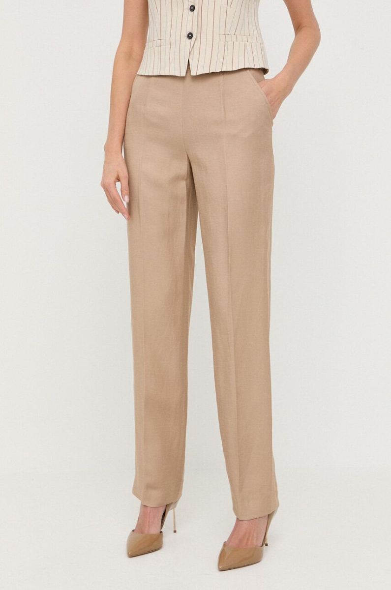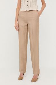 Штани з домішкою льону Luisa Spagnoli колір бежевий широке висока посадка