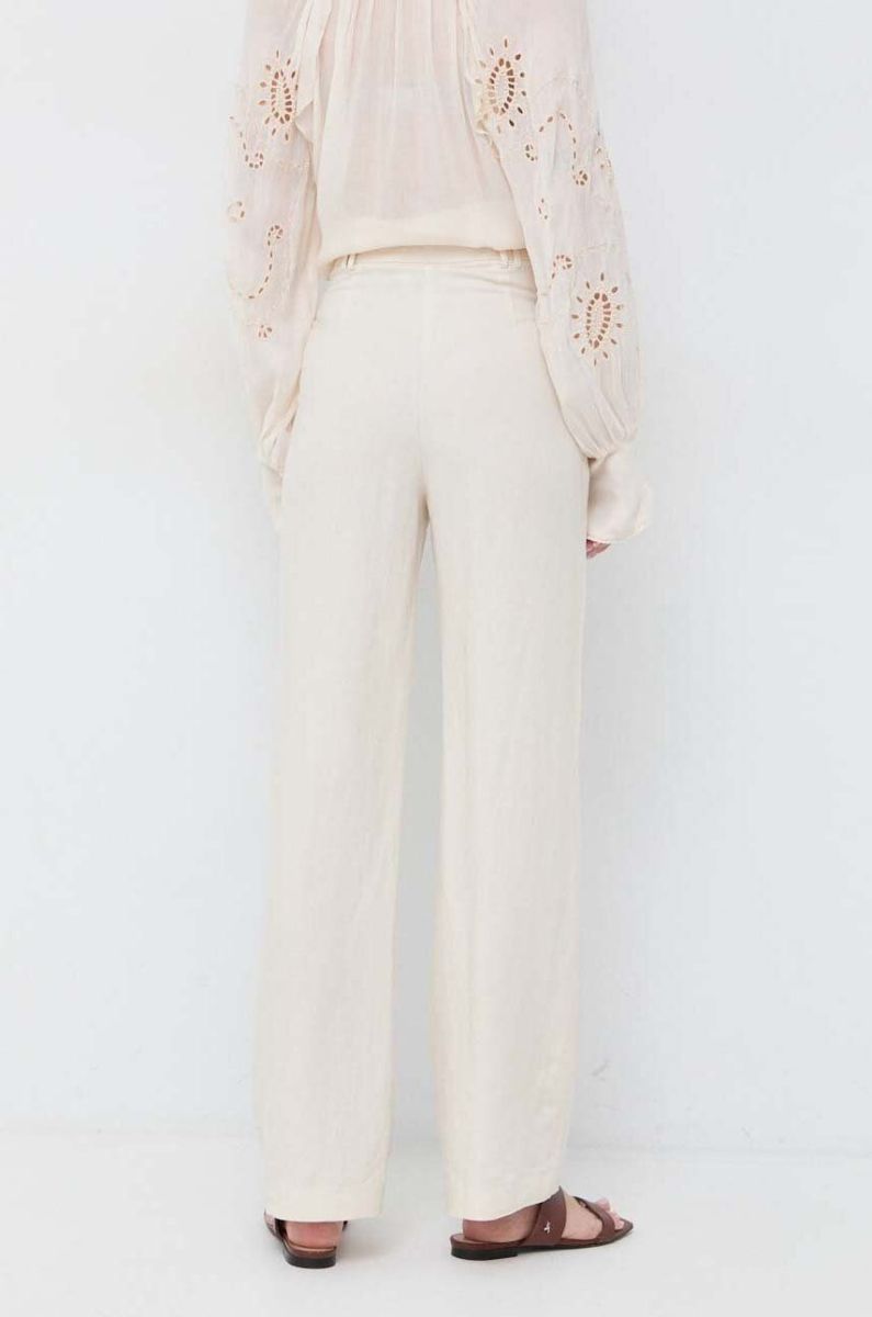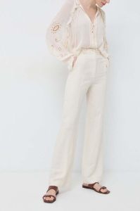 Штани з домішкою льону Patrizia Pepe колір бежевий широке висока посадка