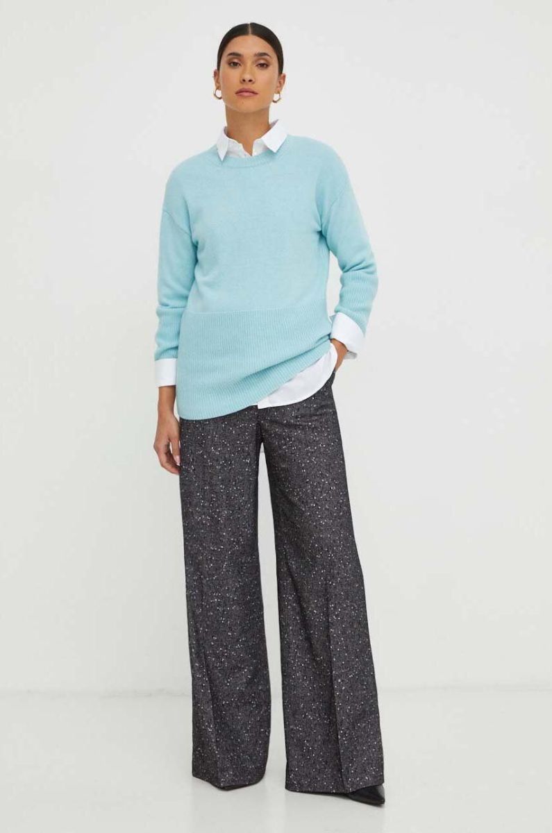 Штани з домішкою вовни BOSS колір чорний широке висока посадка