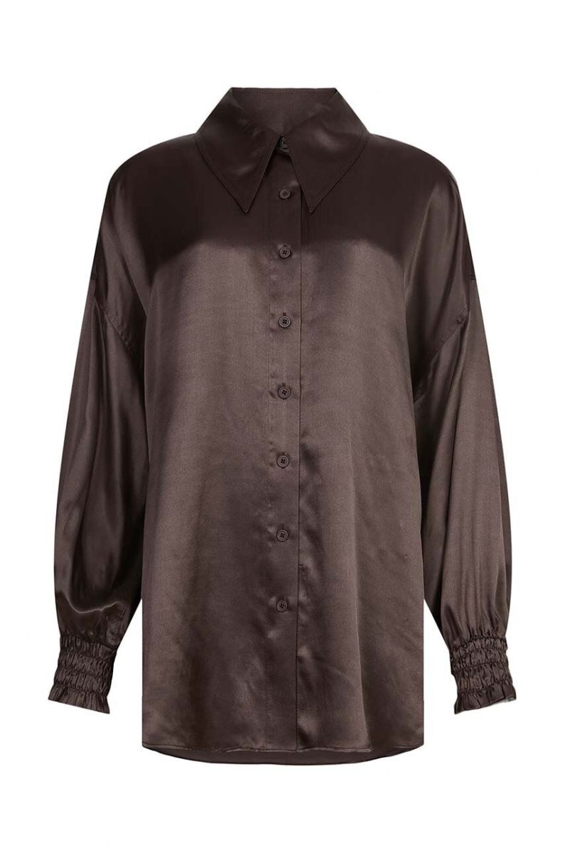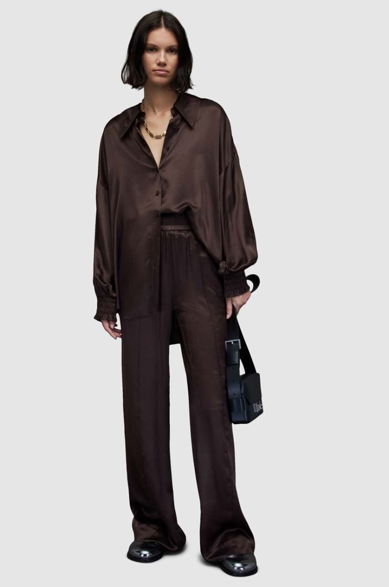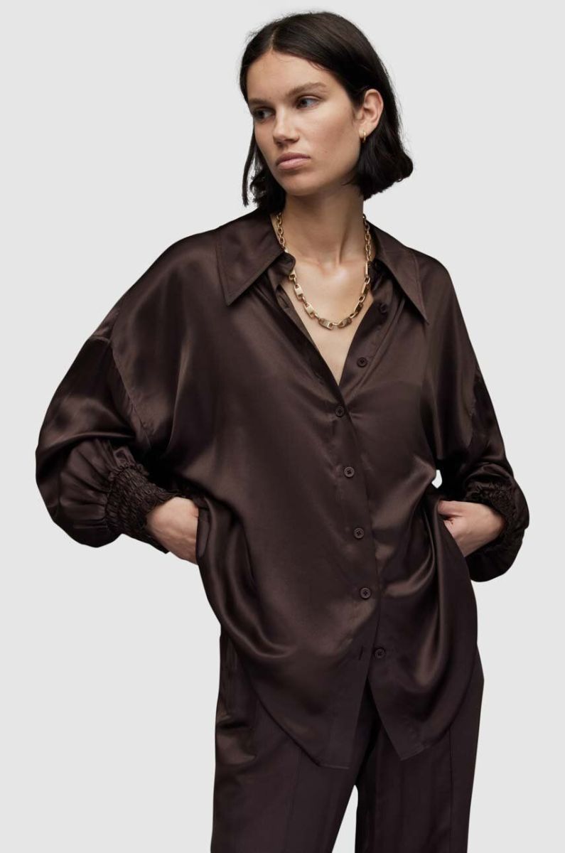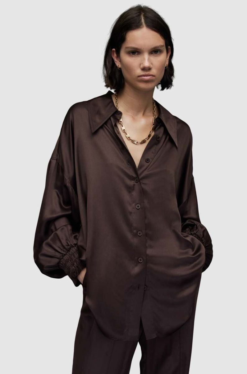 Сорочка AllSaints WH035Z CHARLI SHIRT жіноча колір коричневий regular класичний комір