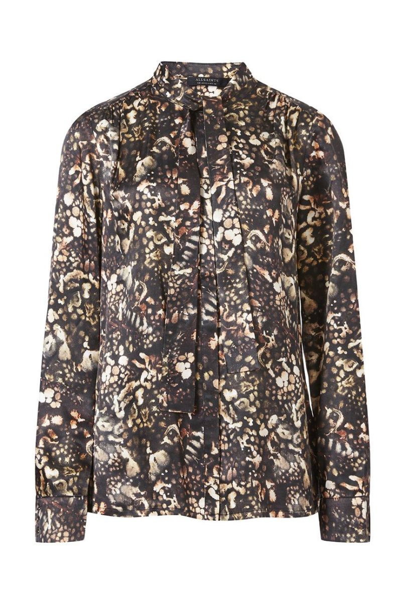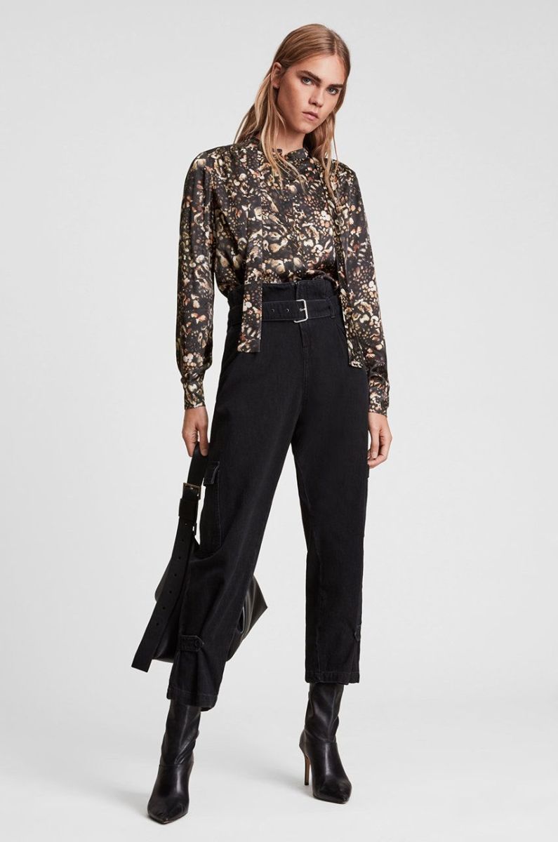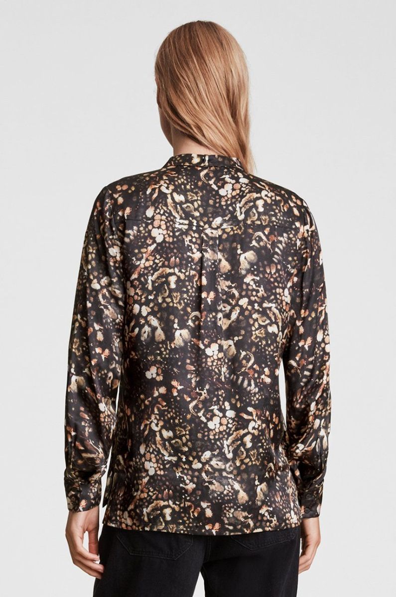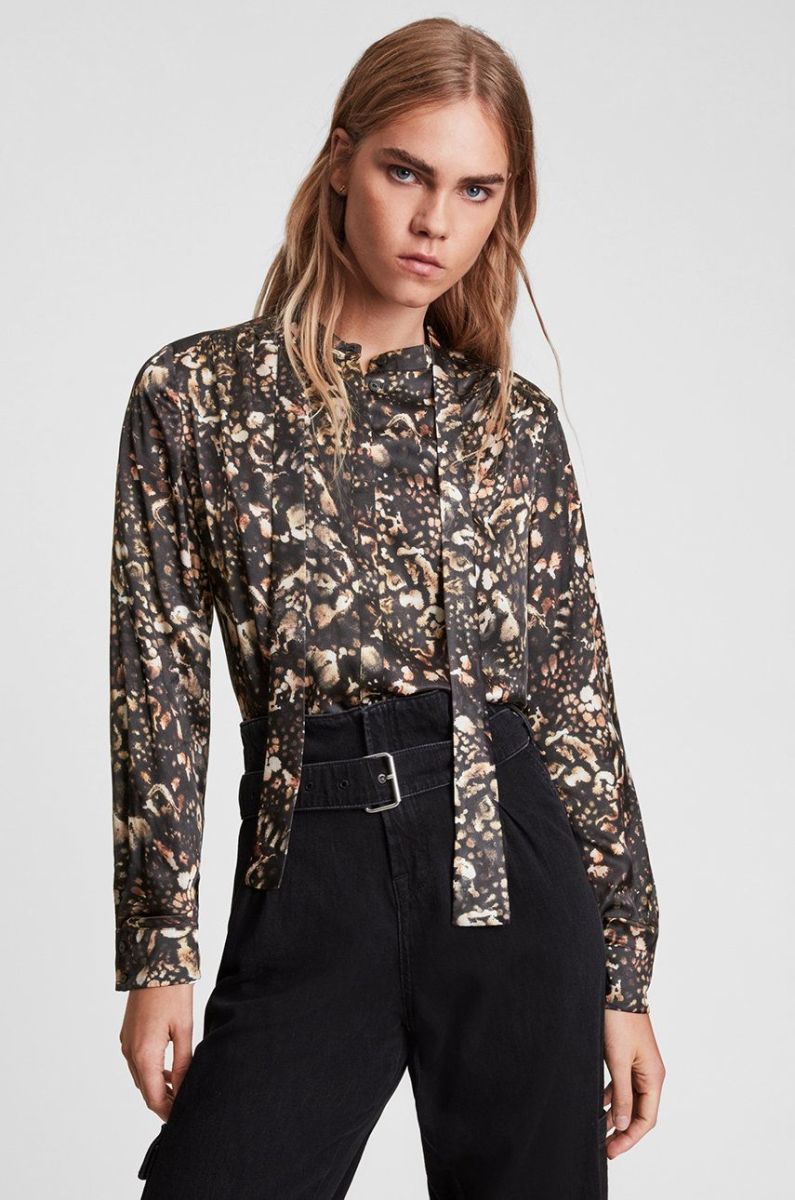 Сорочка AllSaints жіноча колір чорний regular в'язане декольте