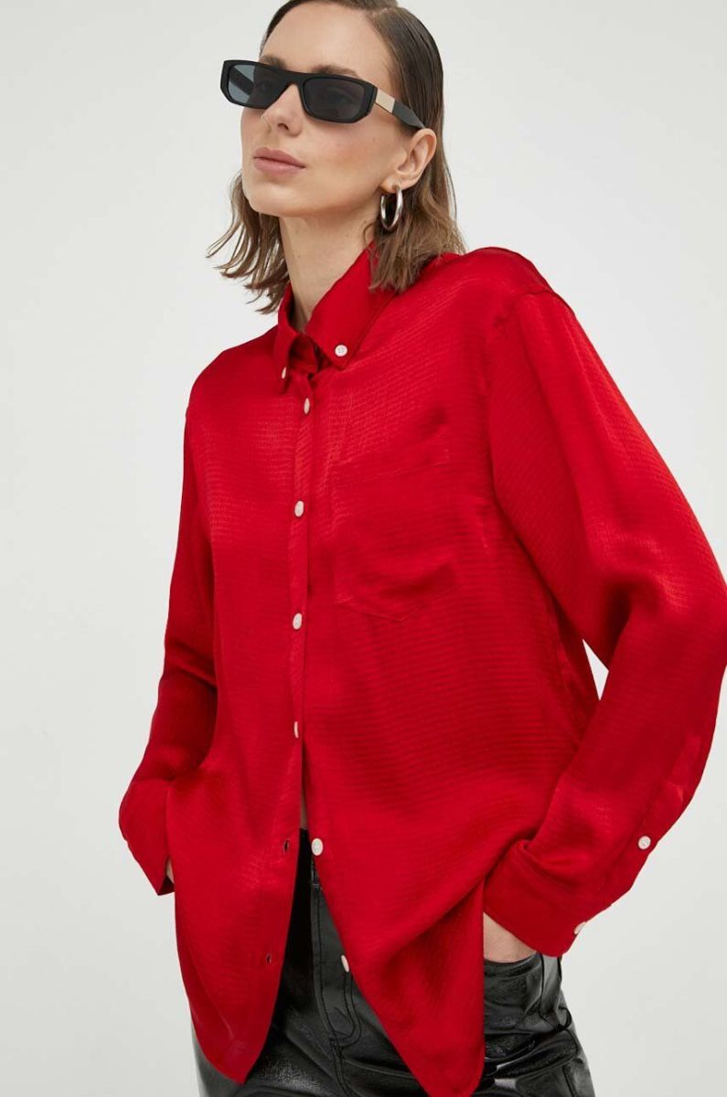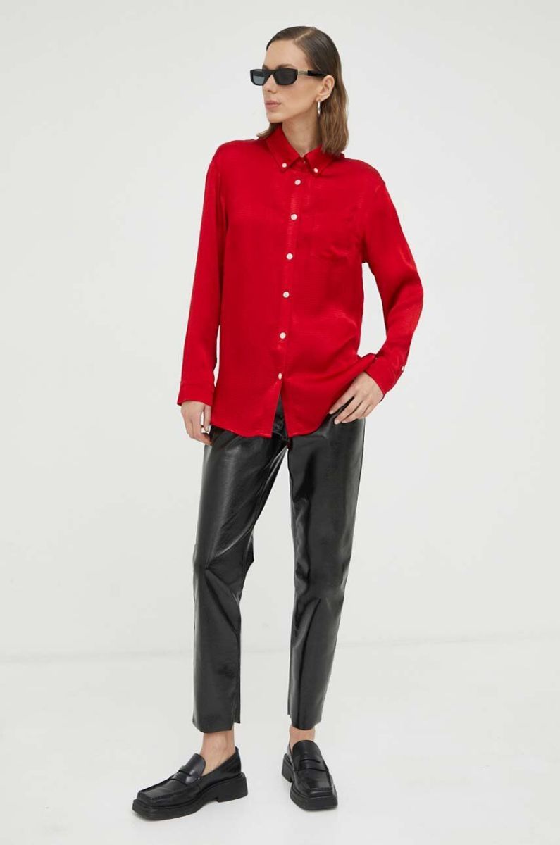 Сорочка American Vintage жіноча колір червоний relaxed класичний комір