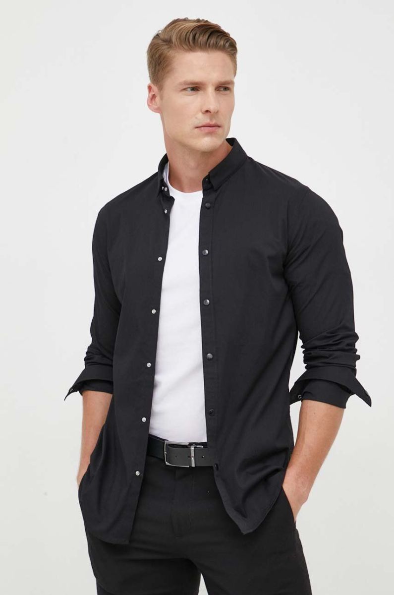 Сорочка Armani Exchange чоловіча колір чорний slim комір button-down (3350933)