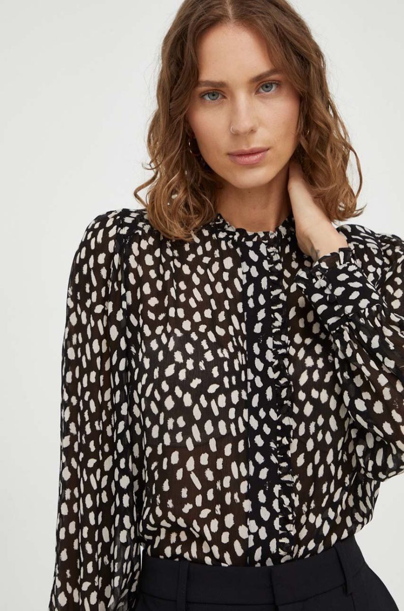 Сорочка BA&SH жіноча колір чорний regular зі стійкою