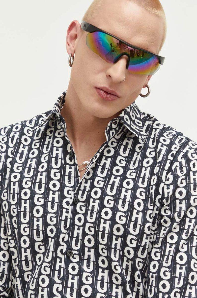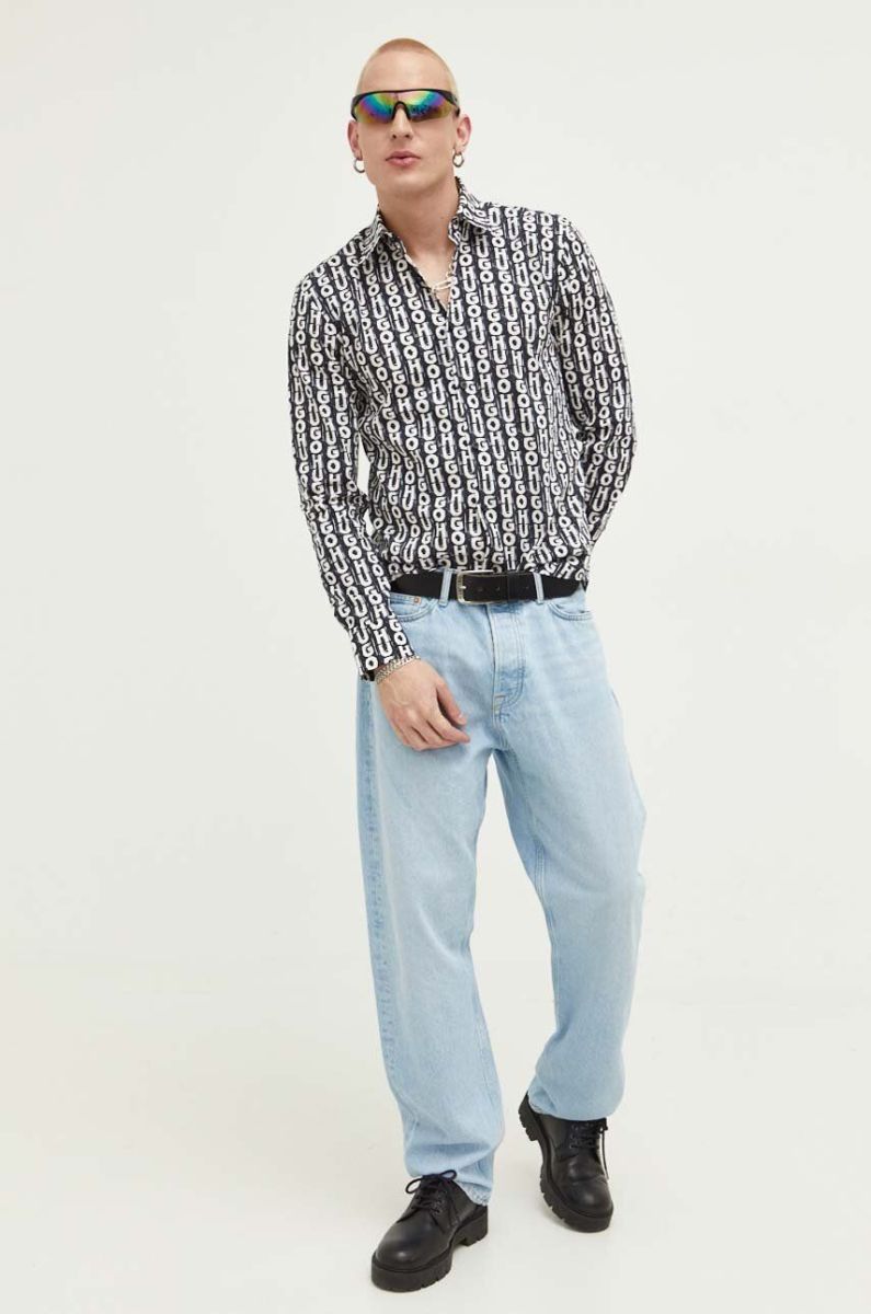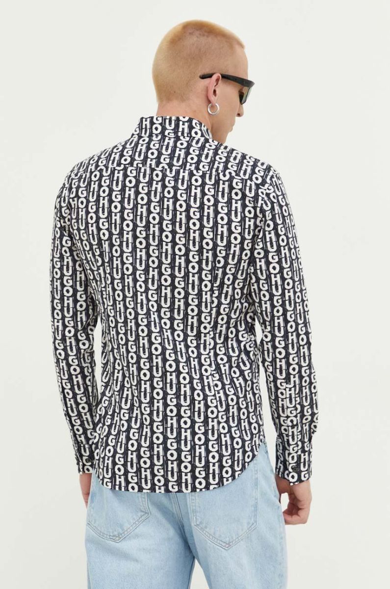 Сорочка HUGO чоловіча колір чорний slim класичний комір (3313137)