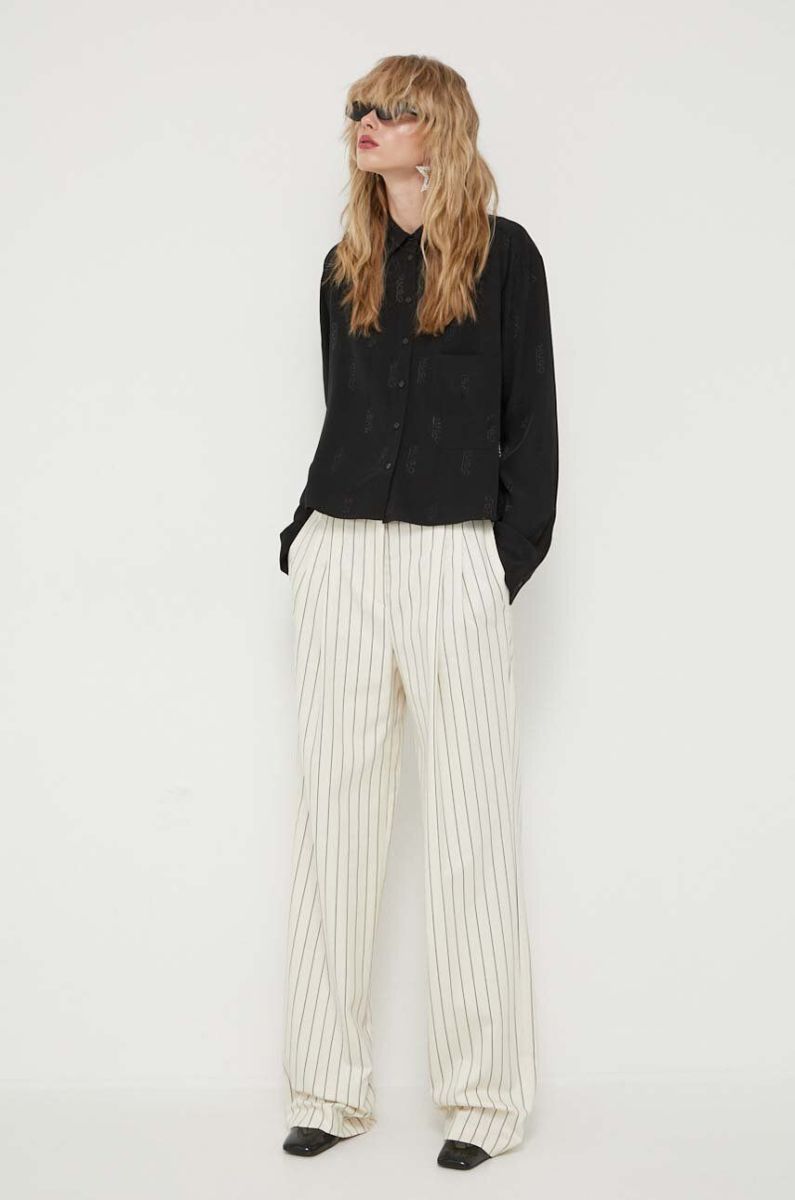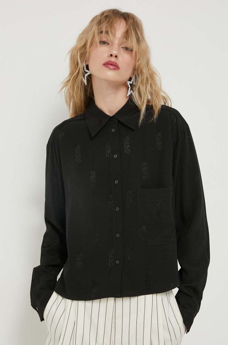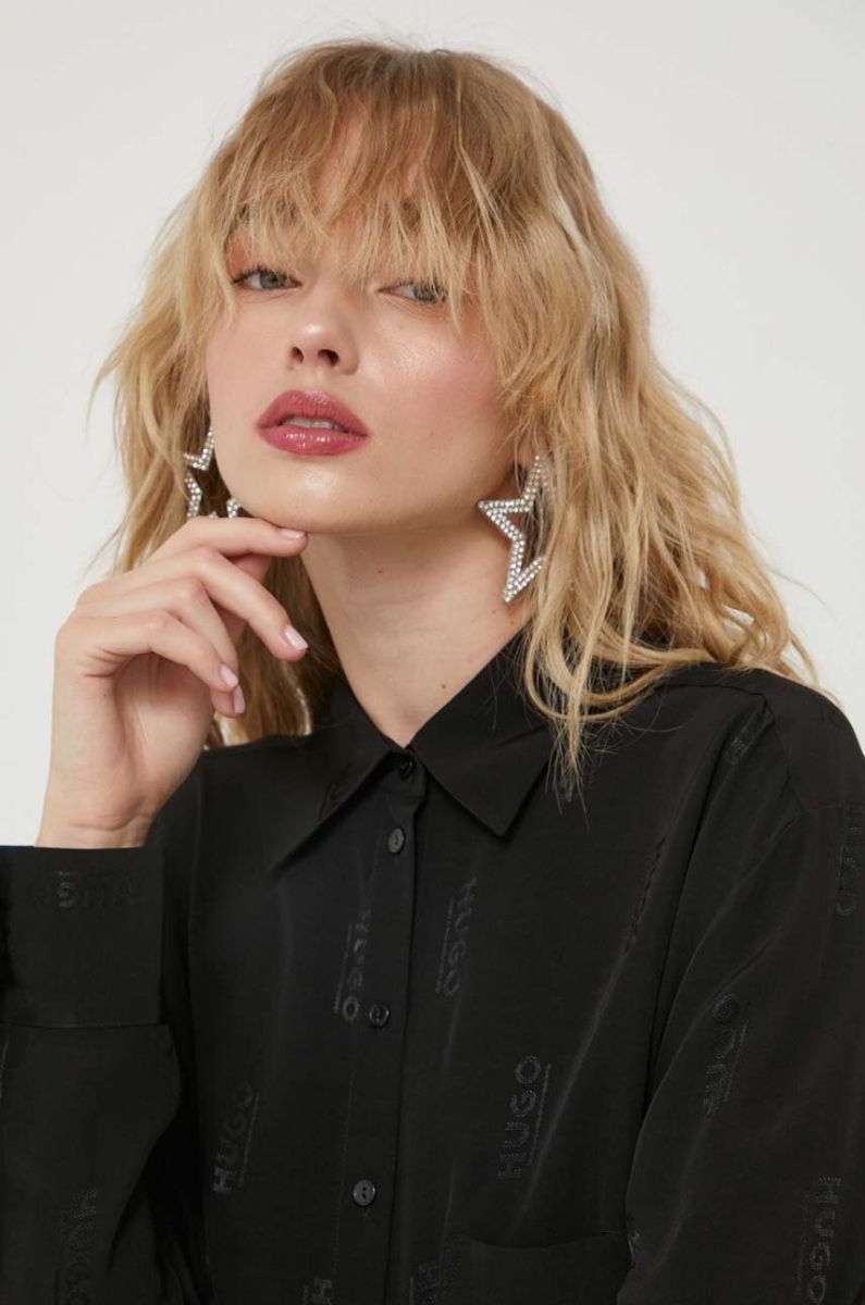 Сорочка HUGO жіноча колір чорний relaxed класичний комір (3415398)