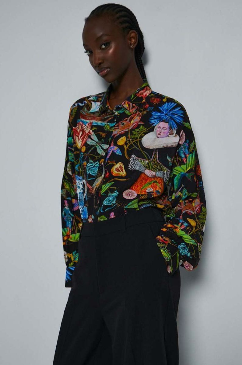 Сорочка Medicine жіноча колір чорний relaxed класичний комір (2880581)