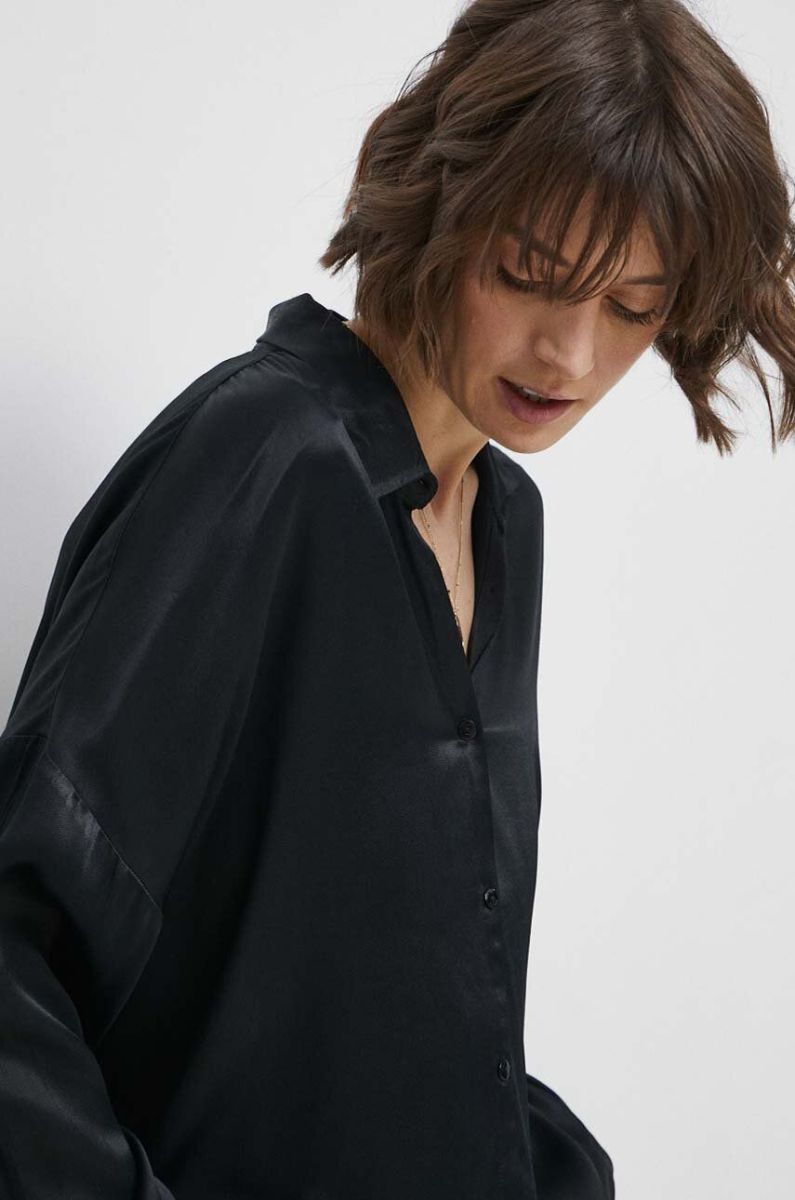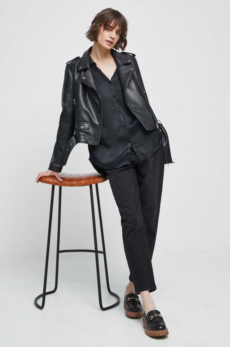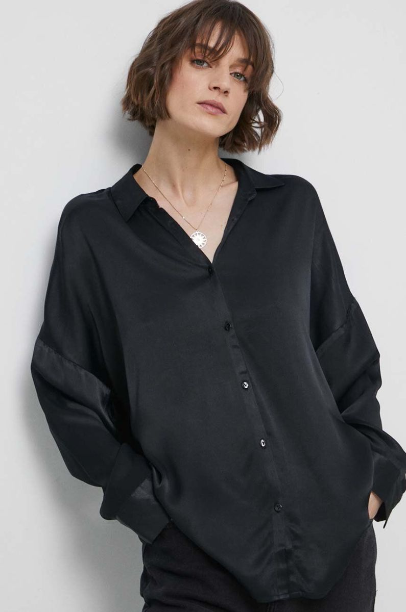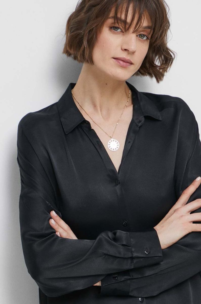 Сорочка Medicine жіноча колір чорний relaxed класичний комір (3017603)