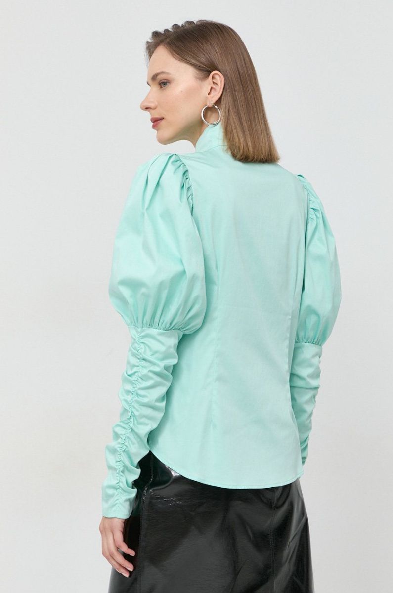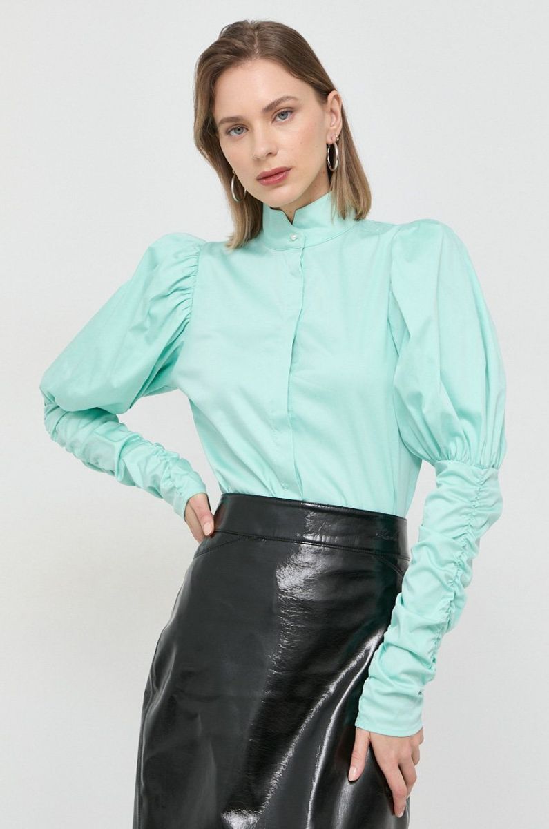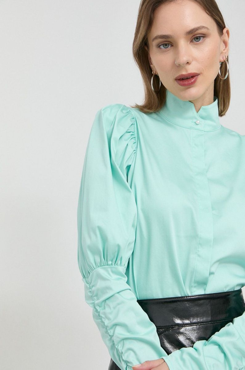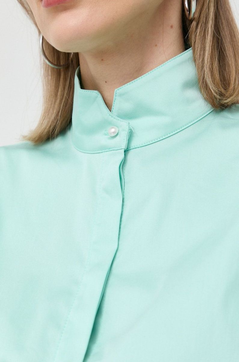 Сорочка Notes du Nord жіноча колір бірюзовий slim зі стійкою