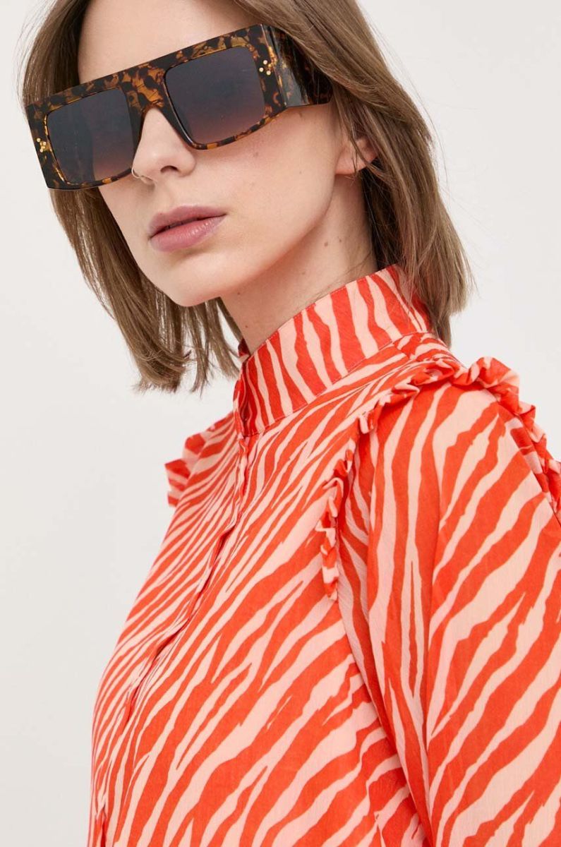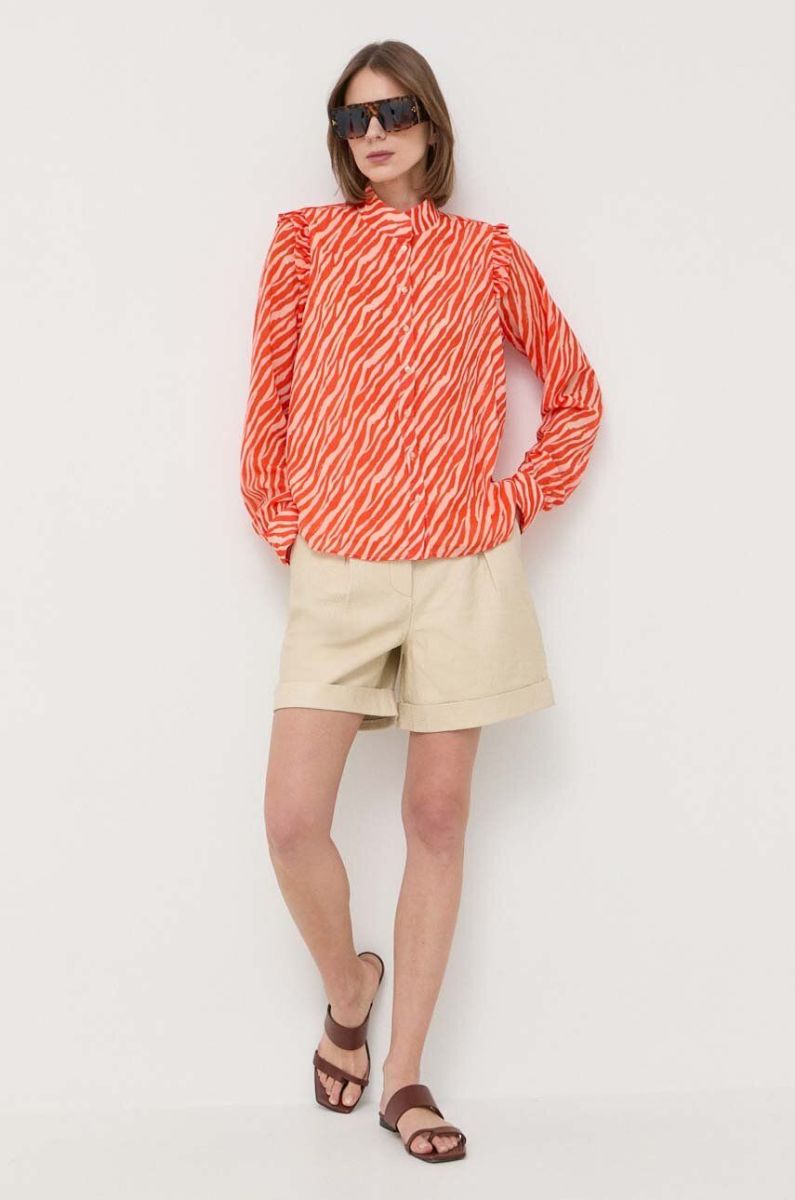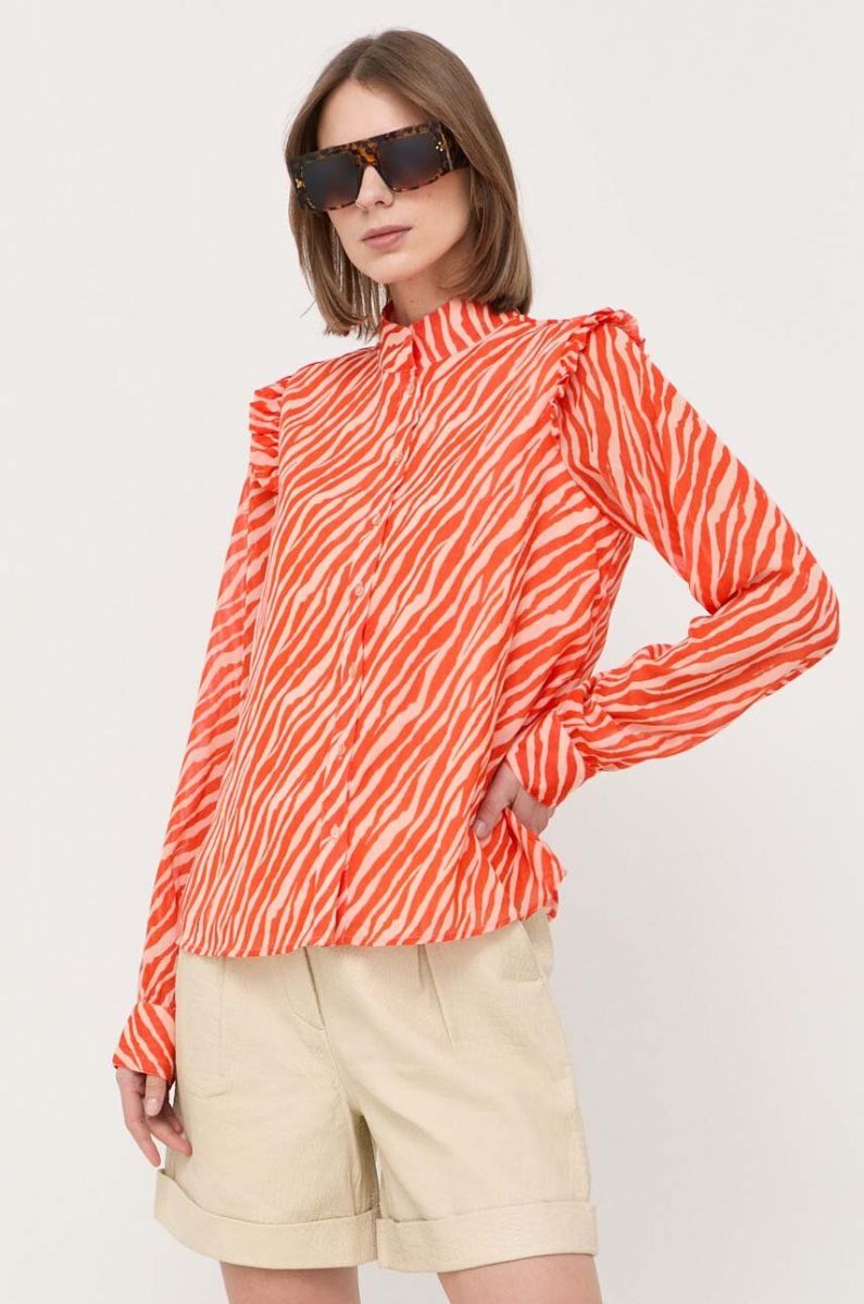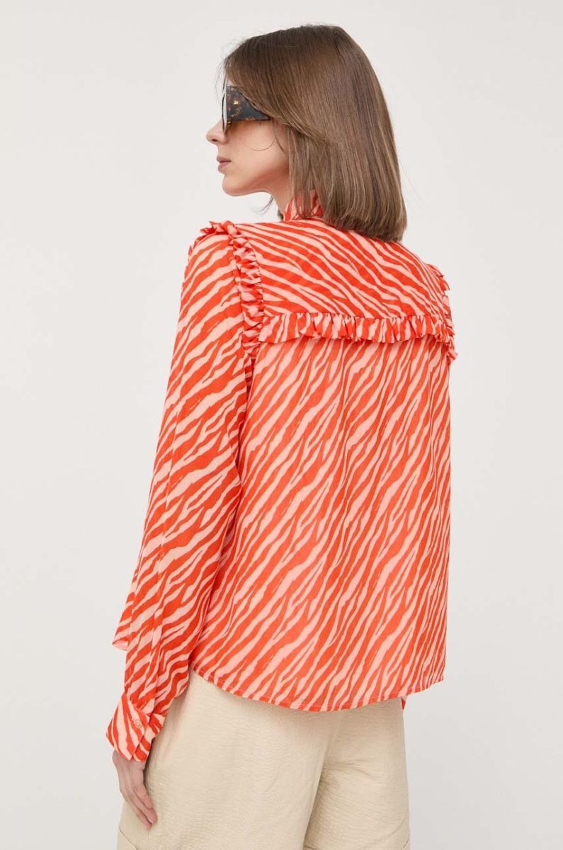 Сорочка Notes du Nord жіноча колір помаранчевий relaxed зі стійкою