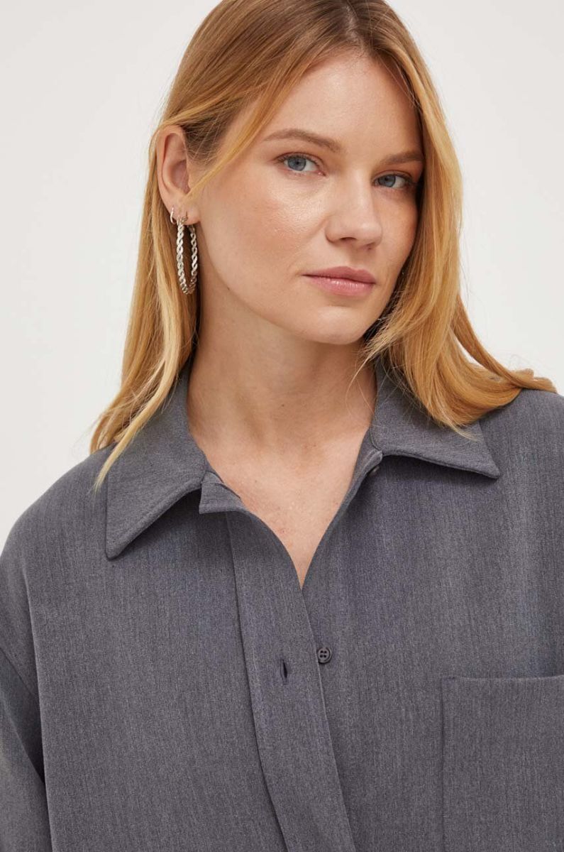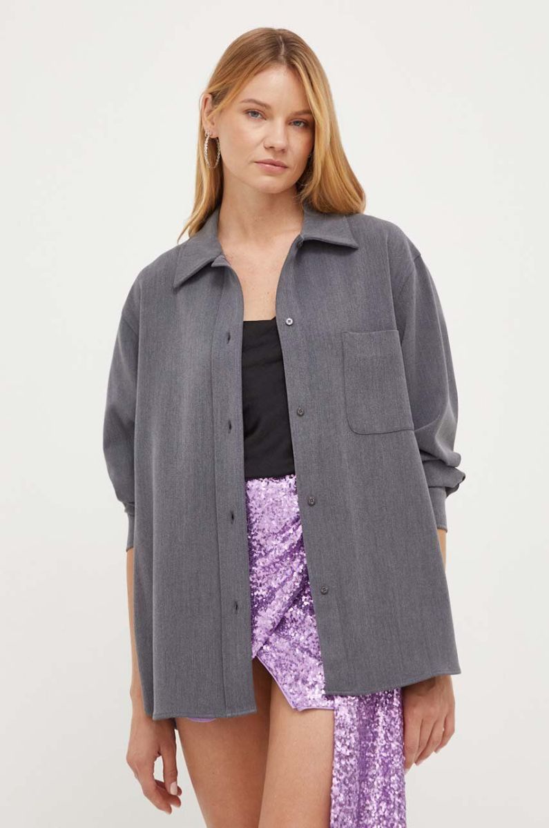 Сорочка Silvian Heach жіноча колір сірий relaxed класичний комір