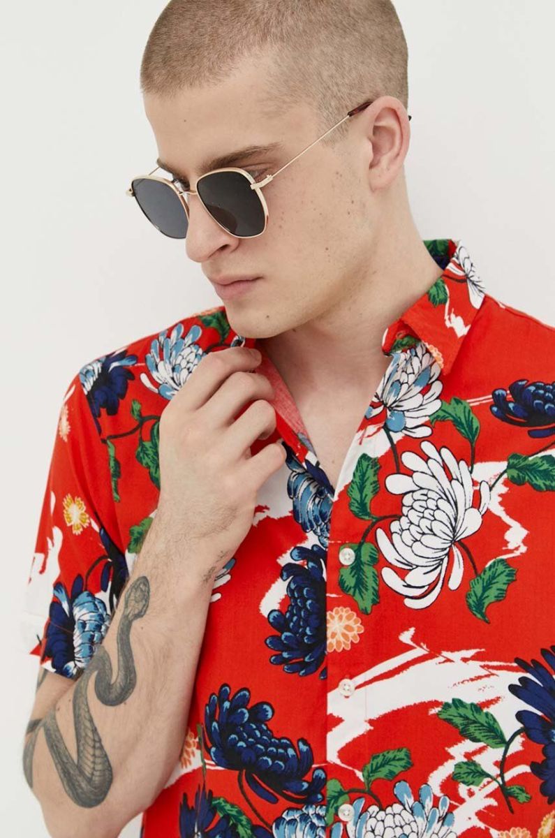 Сорочка Superdry чоловіча колір червоний regular класичний комір