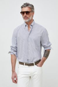 Сорочка із колекції Tommy Hilfiger. Модель виготовлена із тканини в смужку. Має напівштивний комір на гудзиках. Надзвичайно комфортний матеріал з високим вмістом ліоцелю.