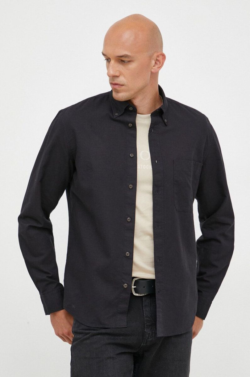 Сорочка з домішкою льону Marc O'Polo колір чорний regular комір button-down