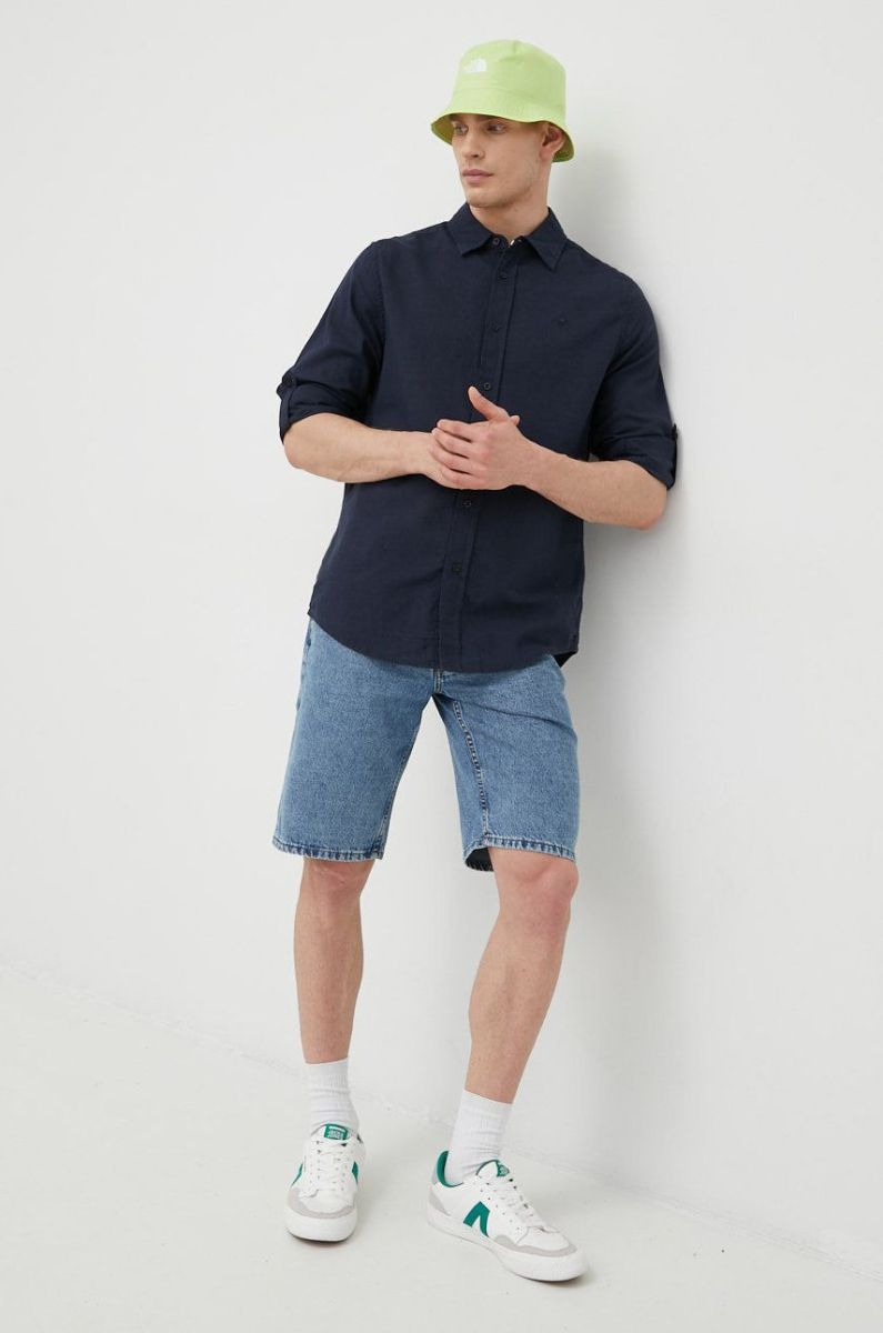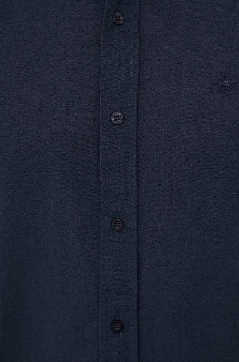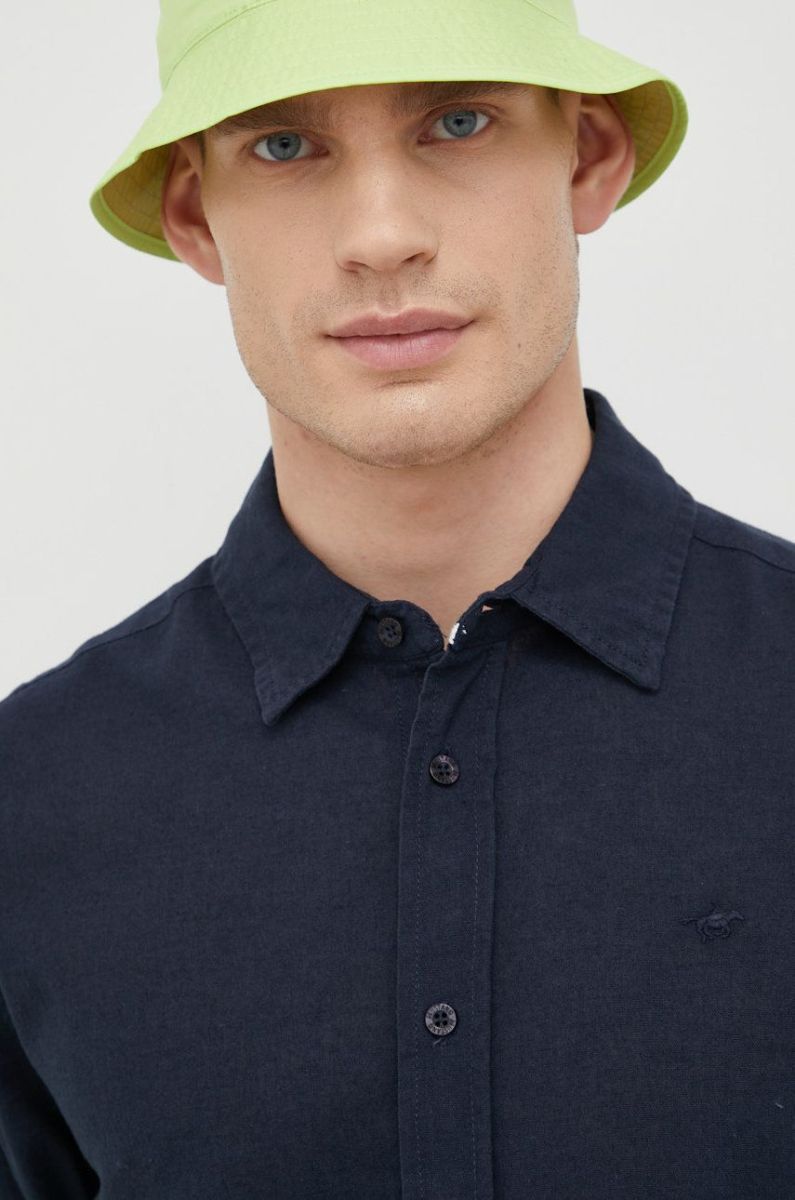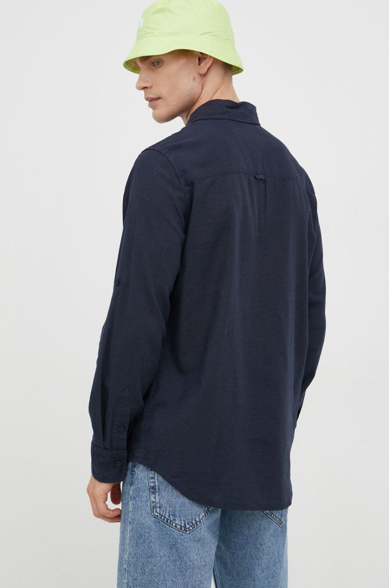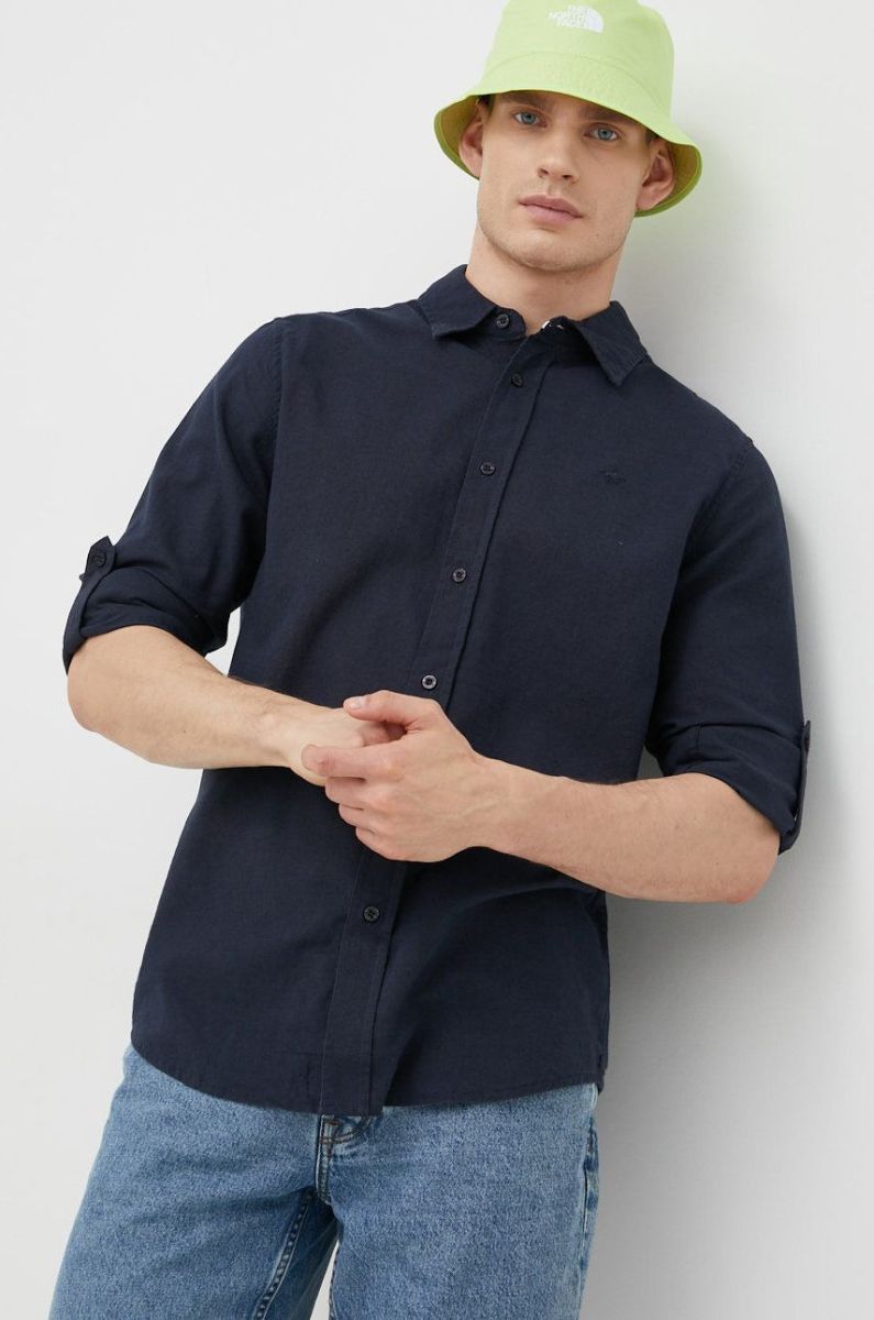 Сорочка з домішкою льону Mustang чоловіча колір синій regular класичний комір