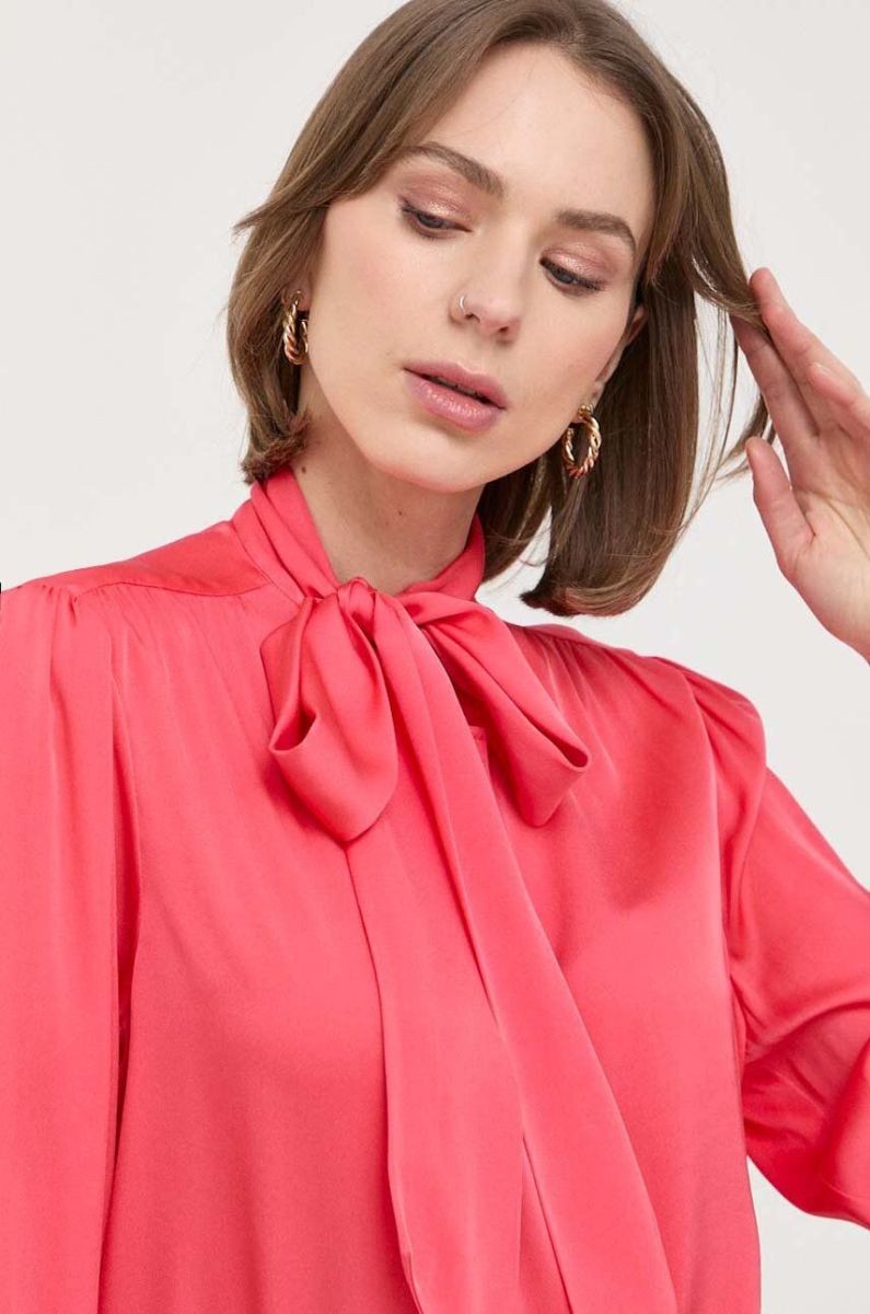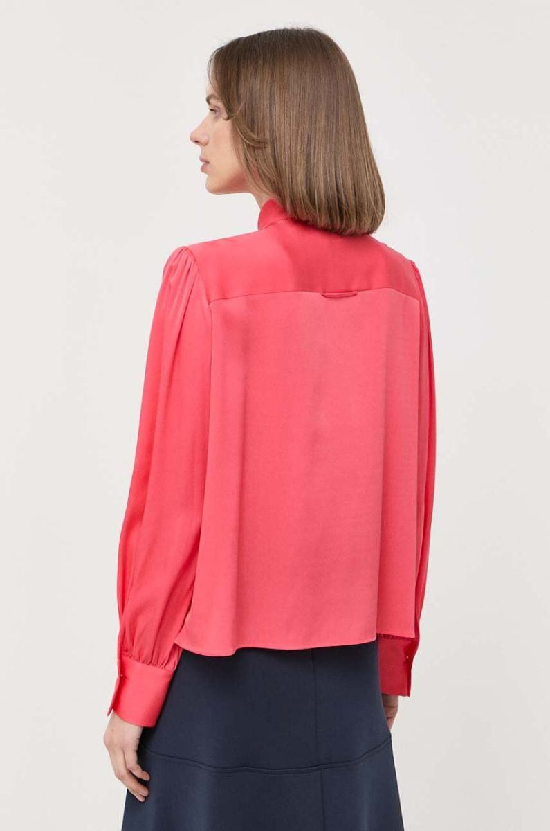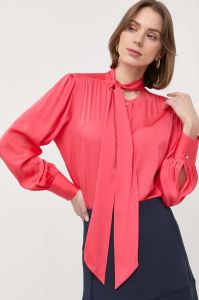 Сорочка з домішкою шовку BOSS колір рожевий regular в'язане декольте