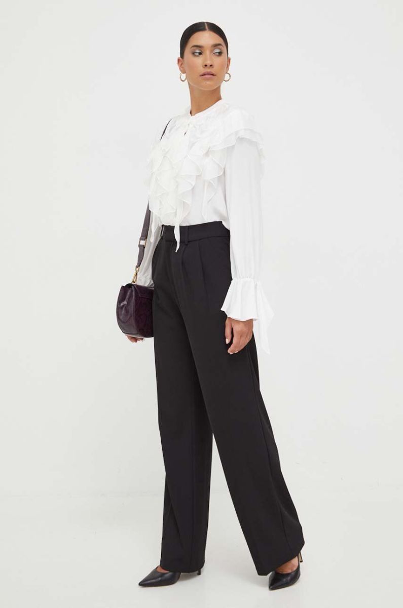 Сорочка з домішкою шовку Pinko колір бежевий regular зі стійкою