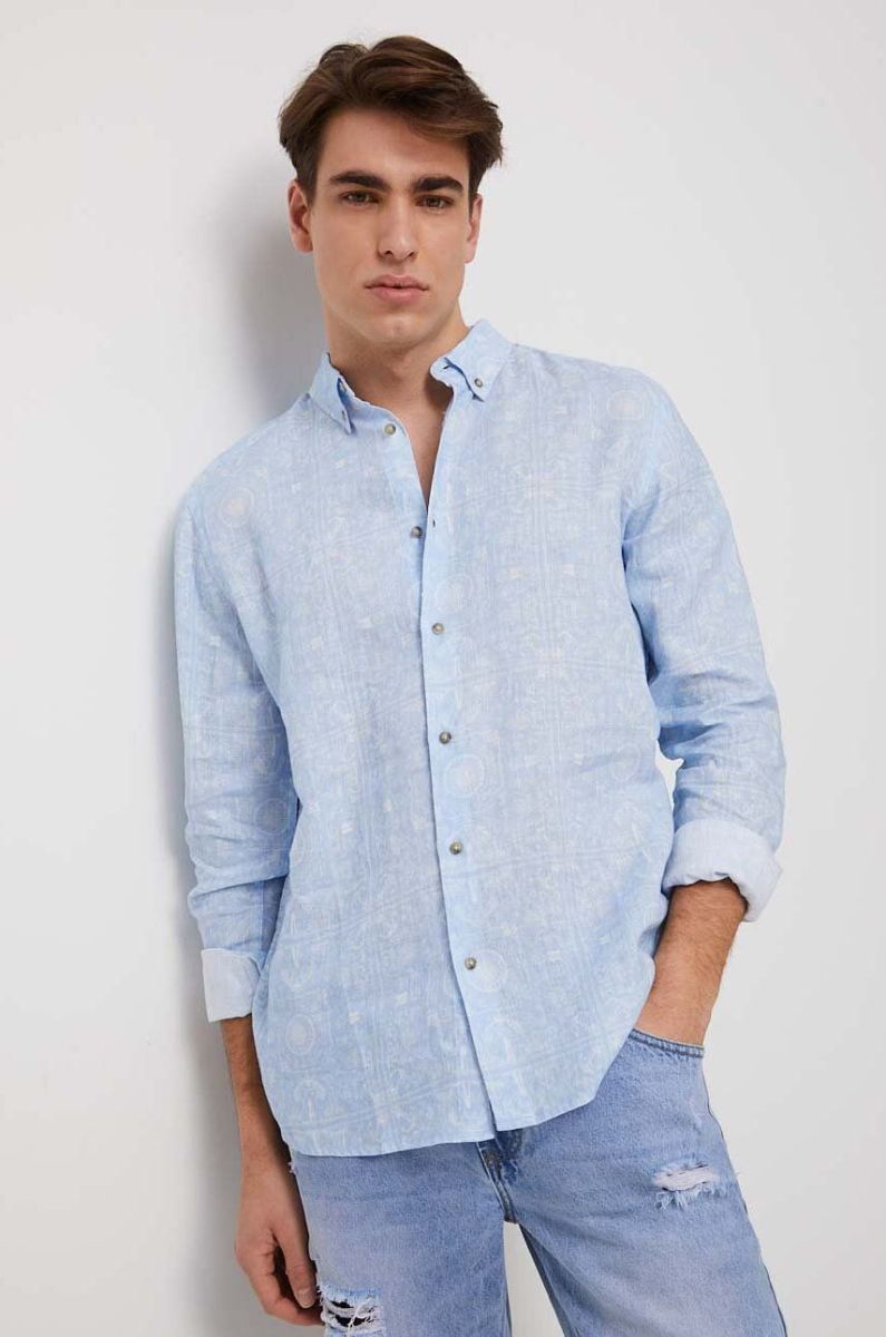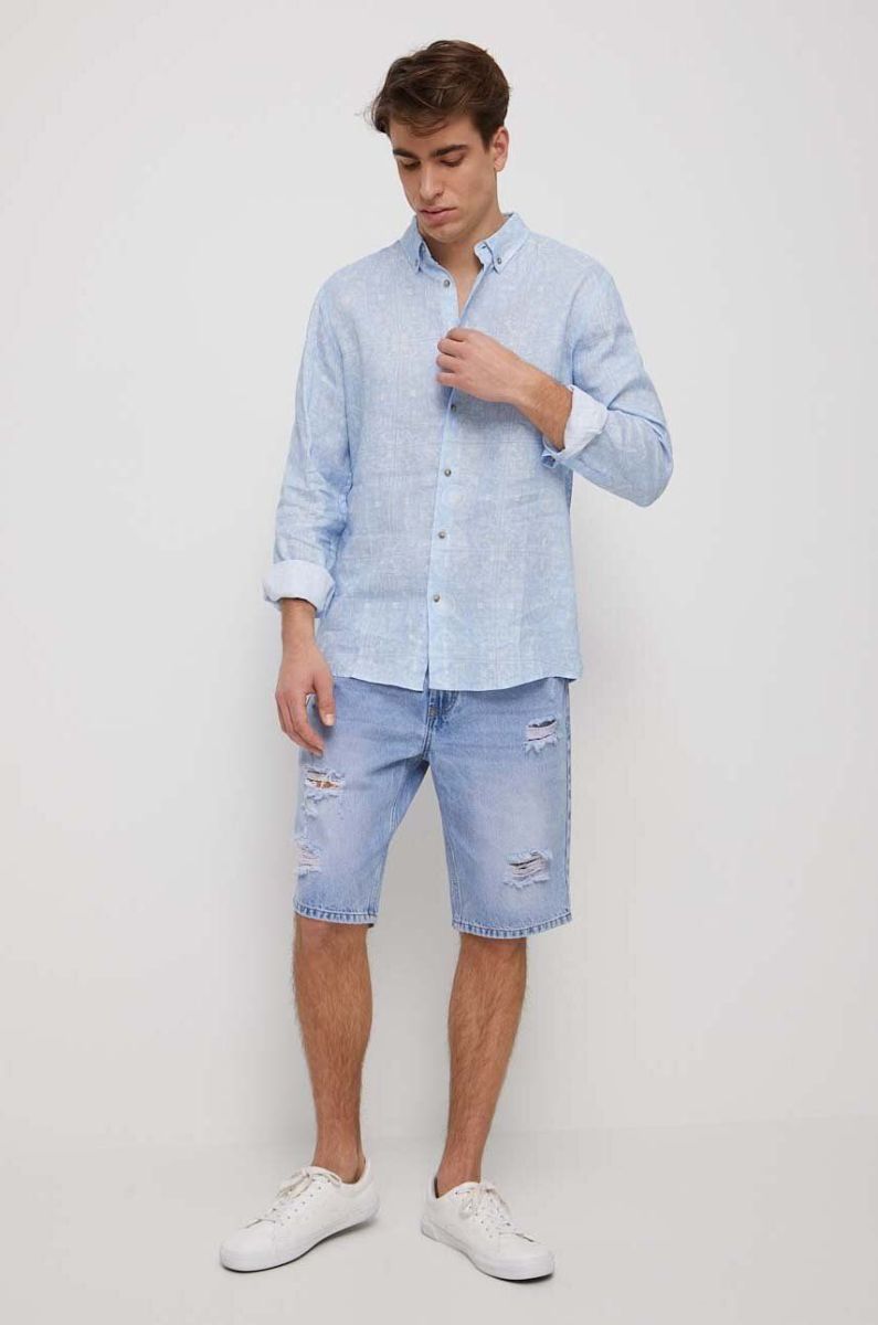 Сорочка з льону Medicine regular комір button-down колір блакитний