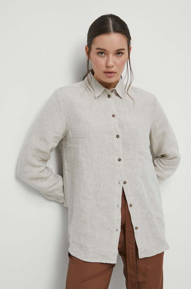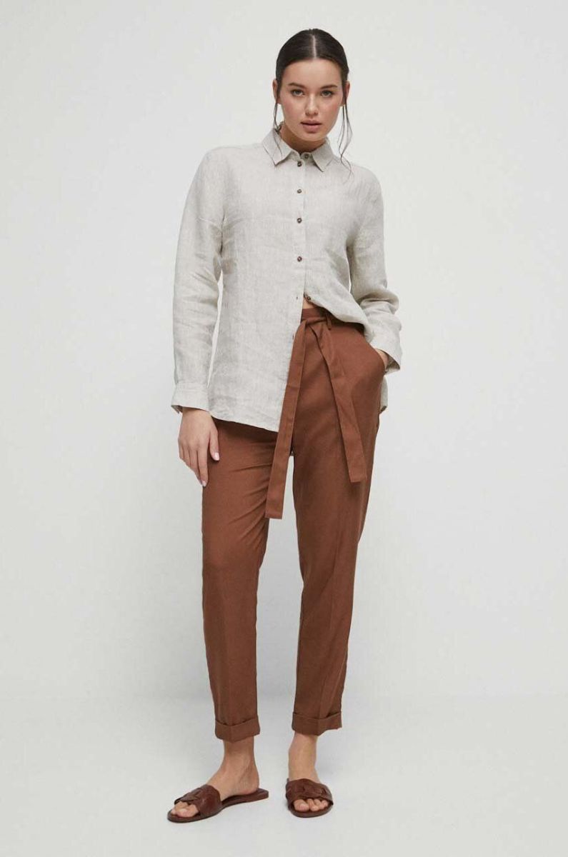 Сорочка з льону Medicine жіноча колір бежевий regular класичний комір (3281084)