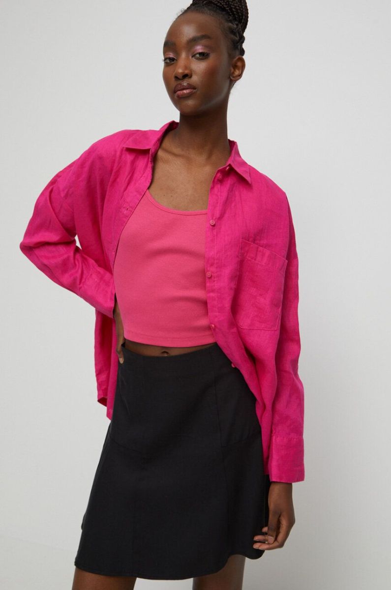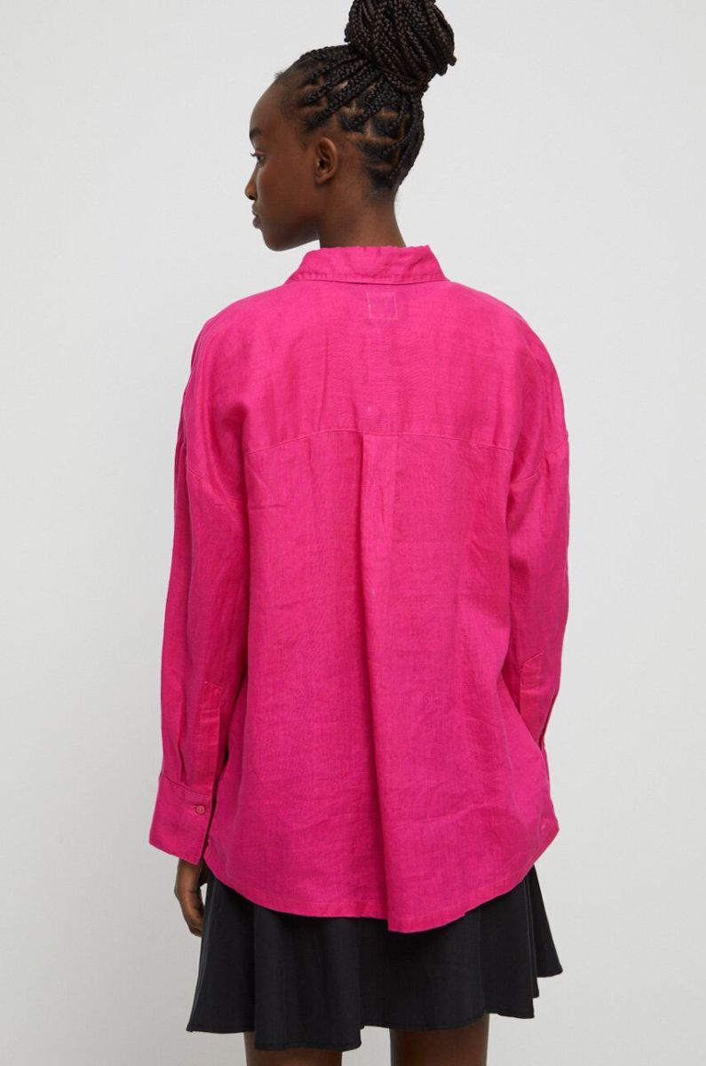 Сорочка з льону Medicine жіноча колір рожевий relaxed класичний комір