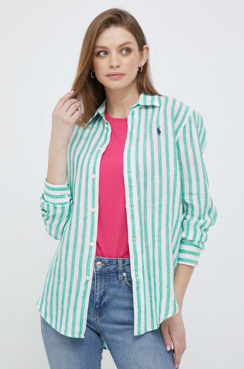 Сорочка з льону Polo Ralph Lauren колір зелений relaxed класичний комір