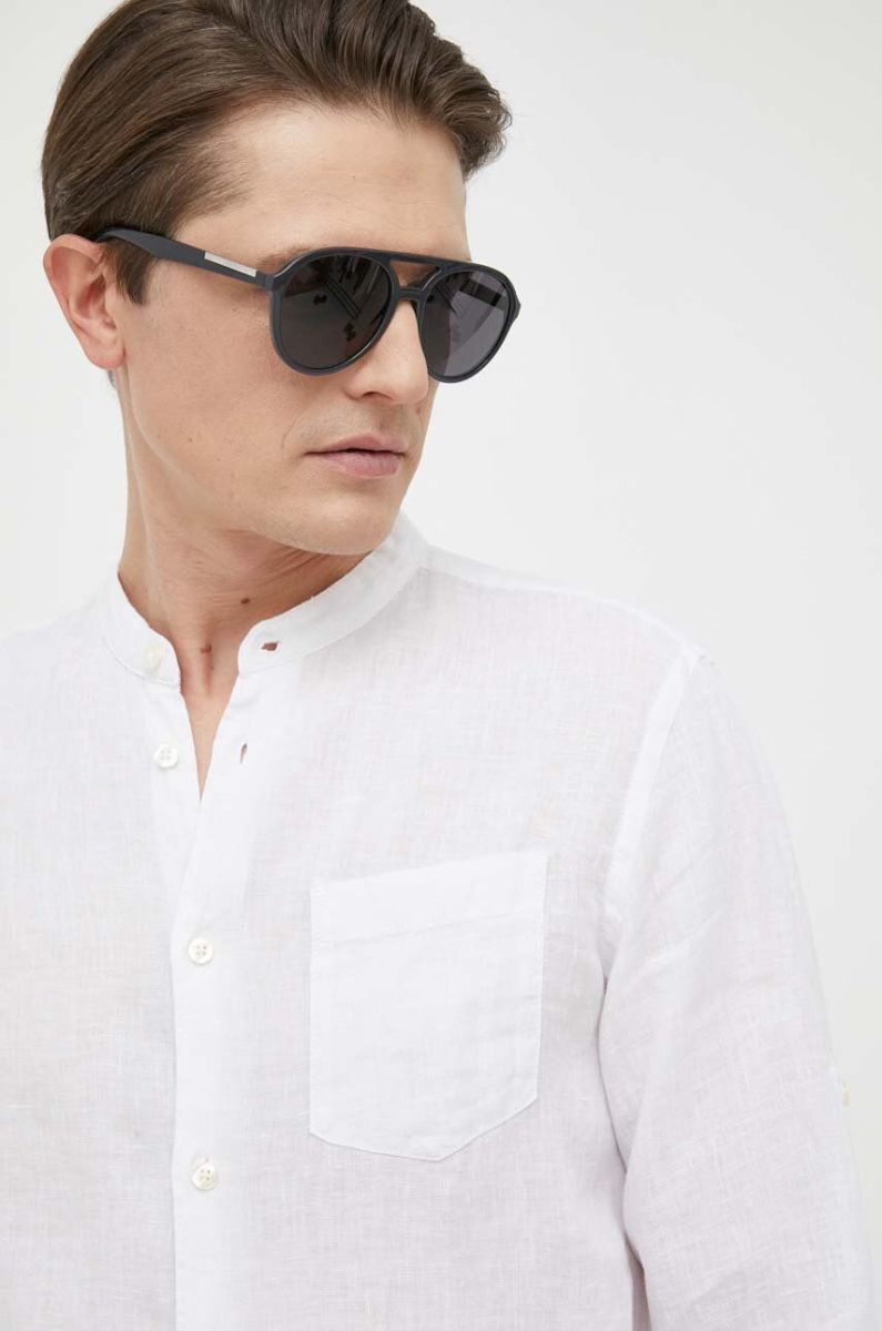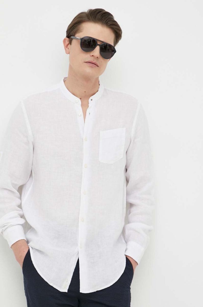 Сорочка з льону United Colors of Benetton колір білий regular зі стійкою