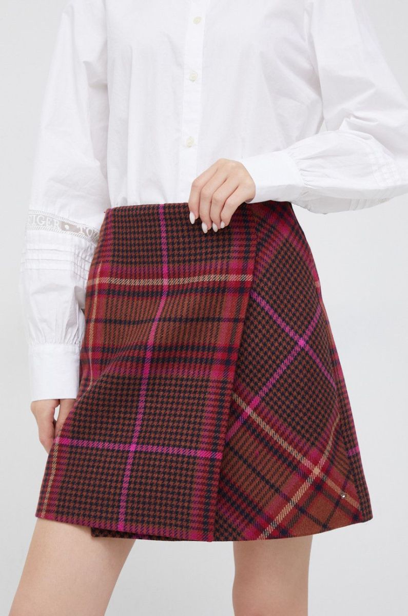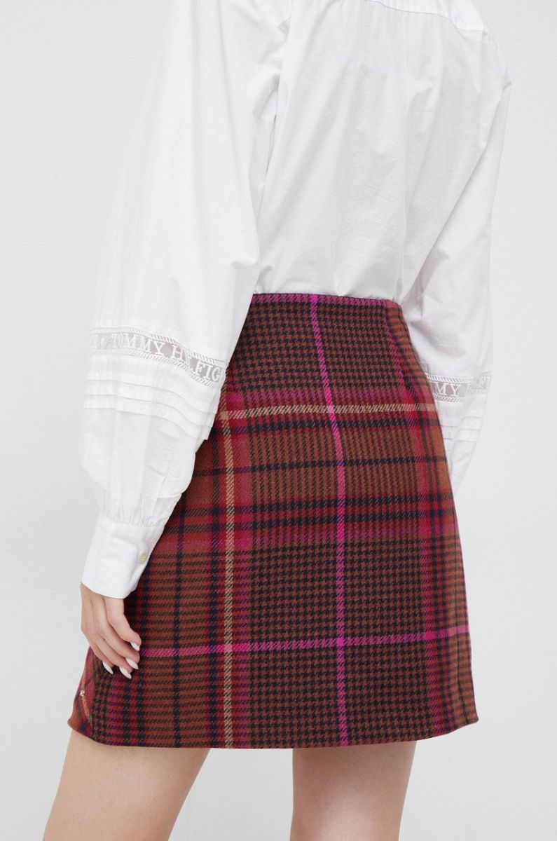 Спідниця з домішкою вовни Tommy Hilfiger колір коричневий mini пряма