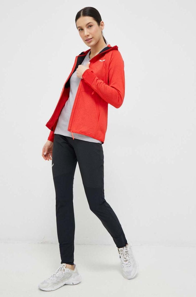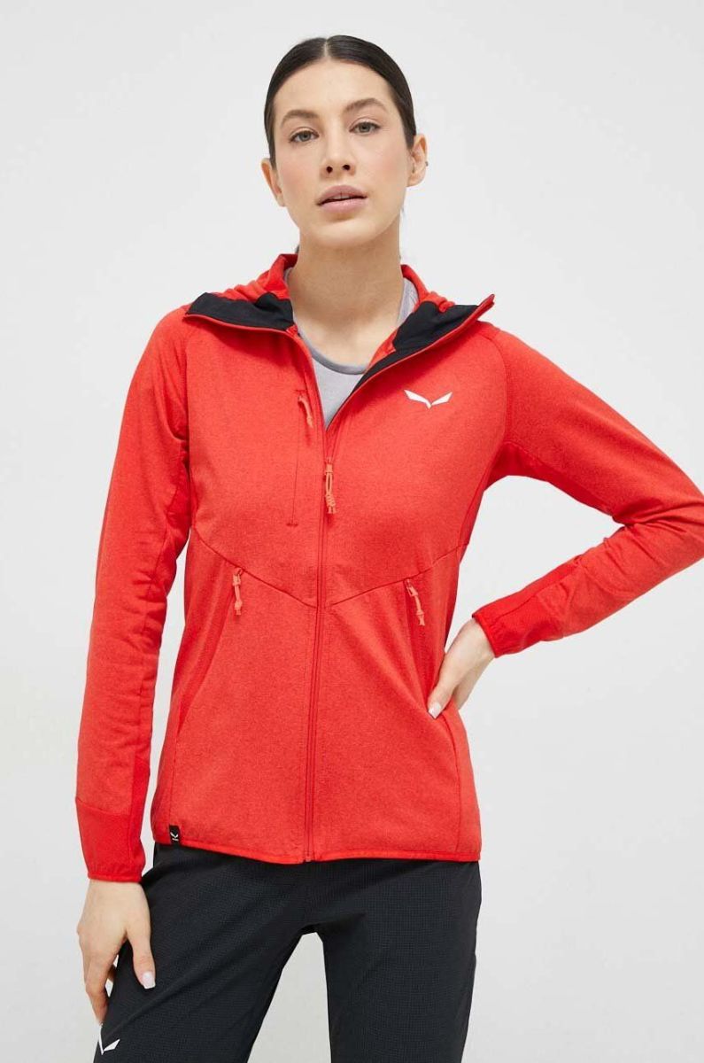 Спортивна кофта Salewa Agner Hybrid жіноча колір червоний з капюшоном меланж