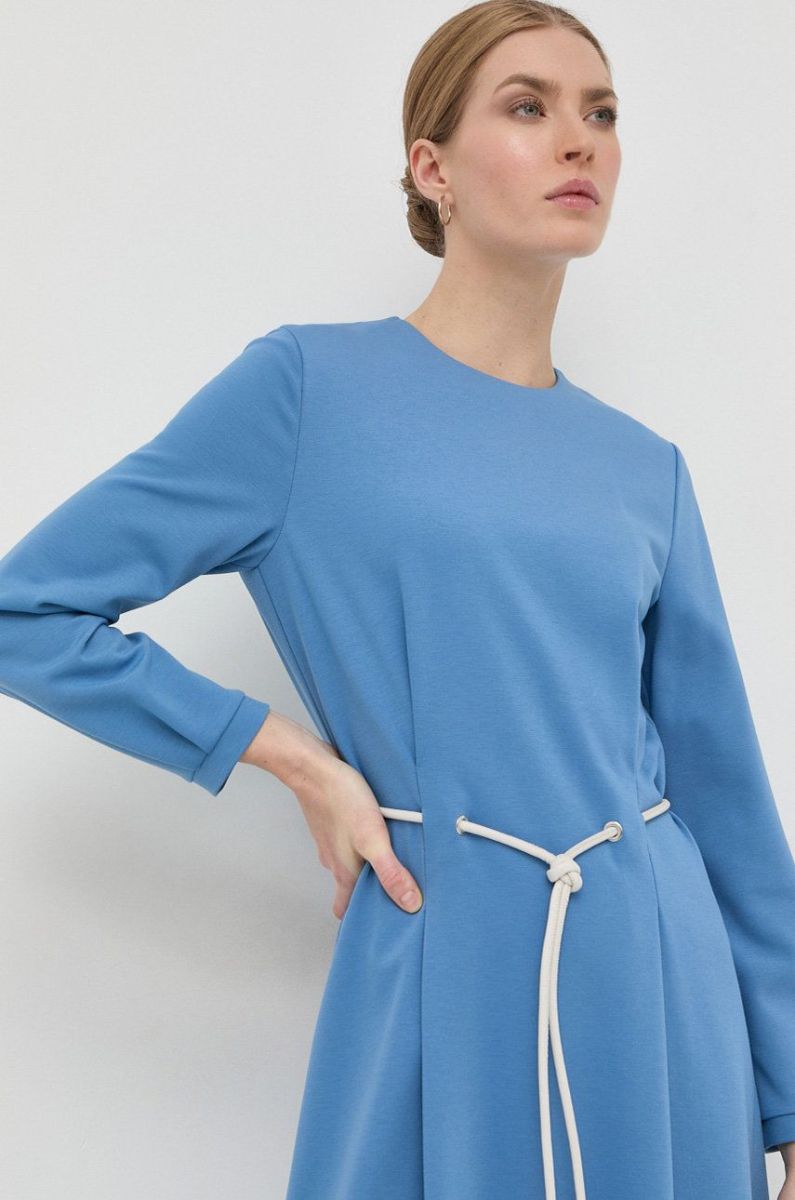Сукня BOSS mini розкльошена колір блакитний (2906380)