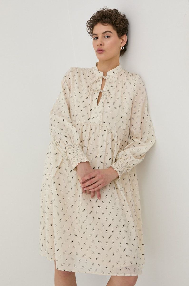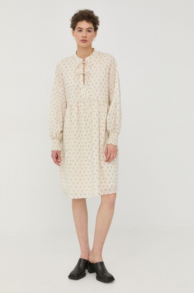 Сукня Bruuns Bazaar колір бежевий midi розкльошена (2350941)
