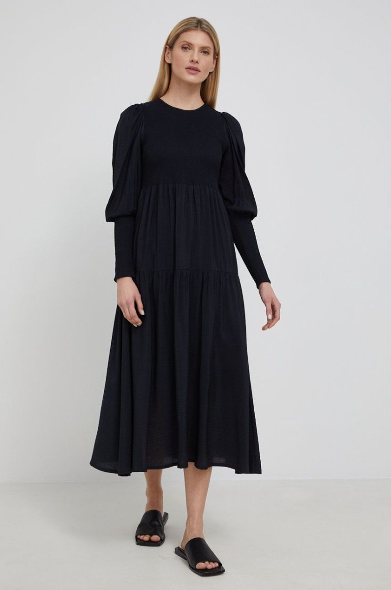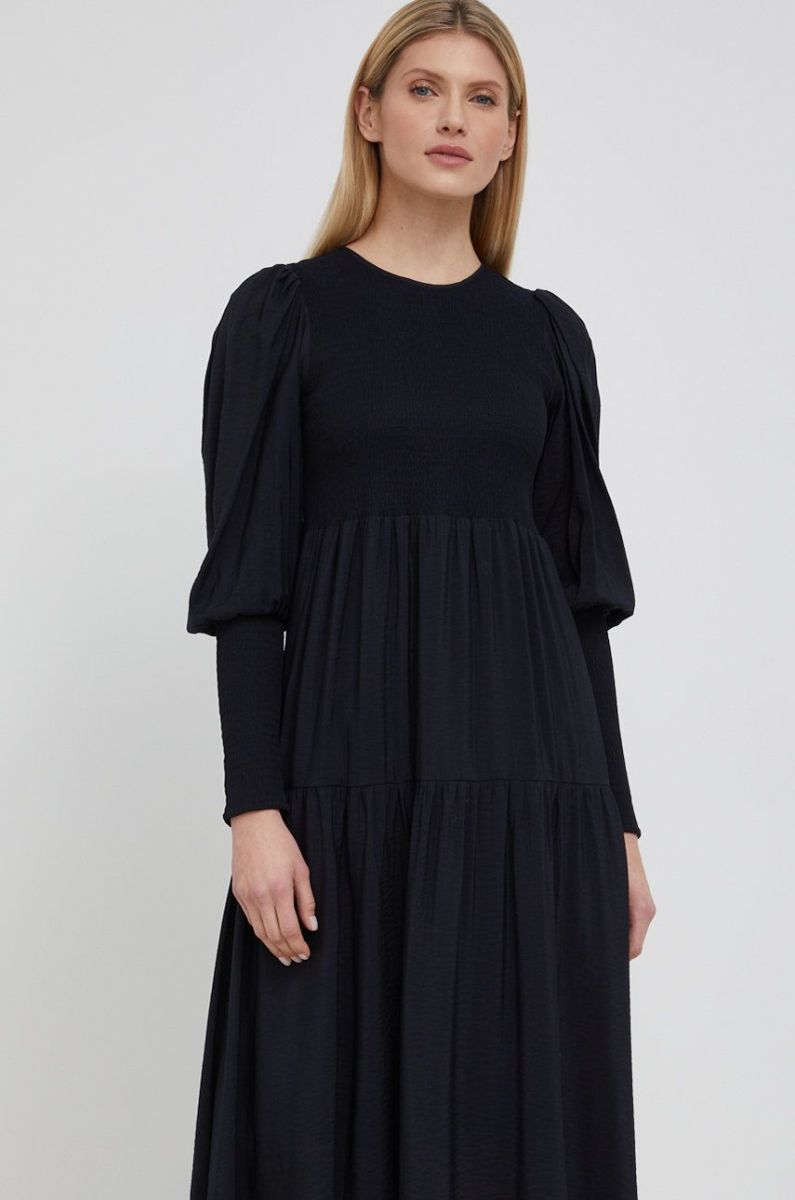 Сукня Gestuz колір чорний maxi розкльошена (2061357)