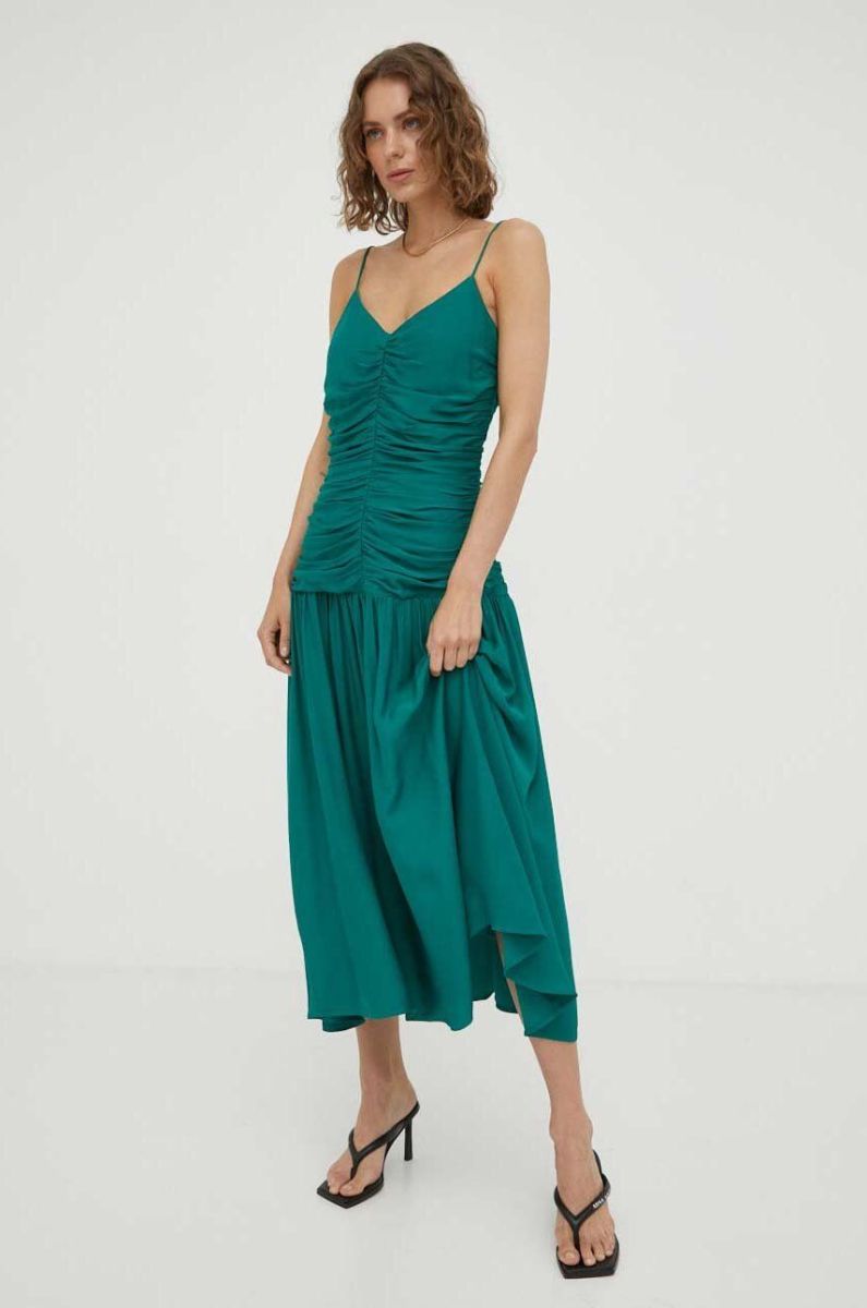 Сукня Lovechild колір зелений midi розкльошена