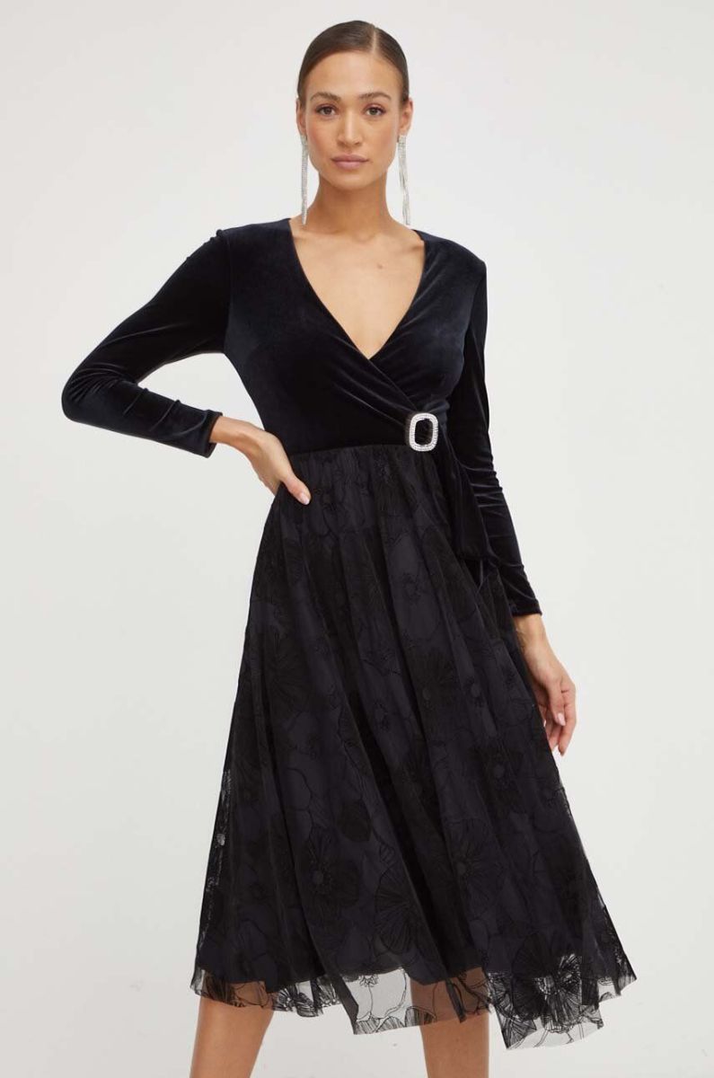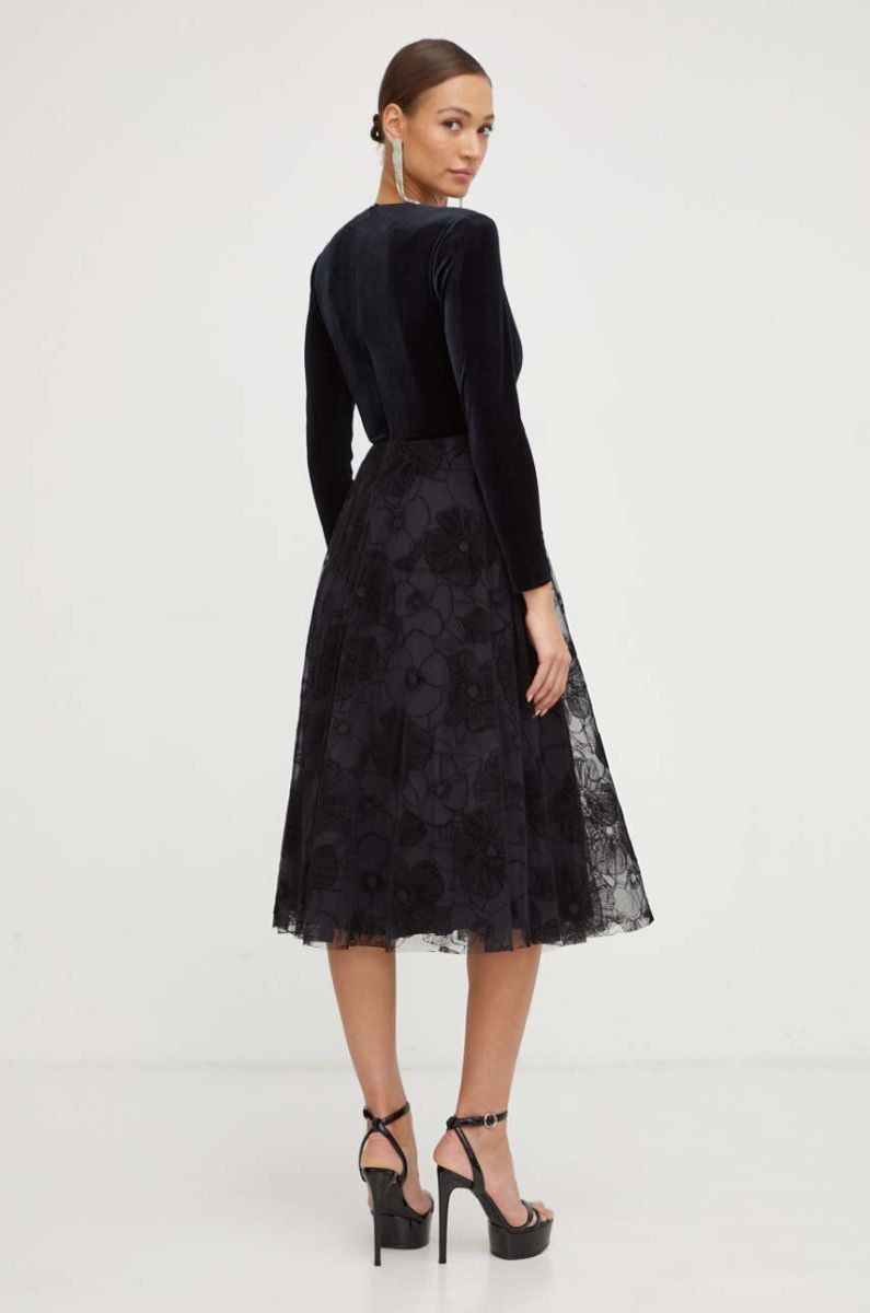 Сукня Nissa колір чорний midi розкльошена (3649227)